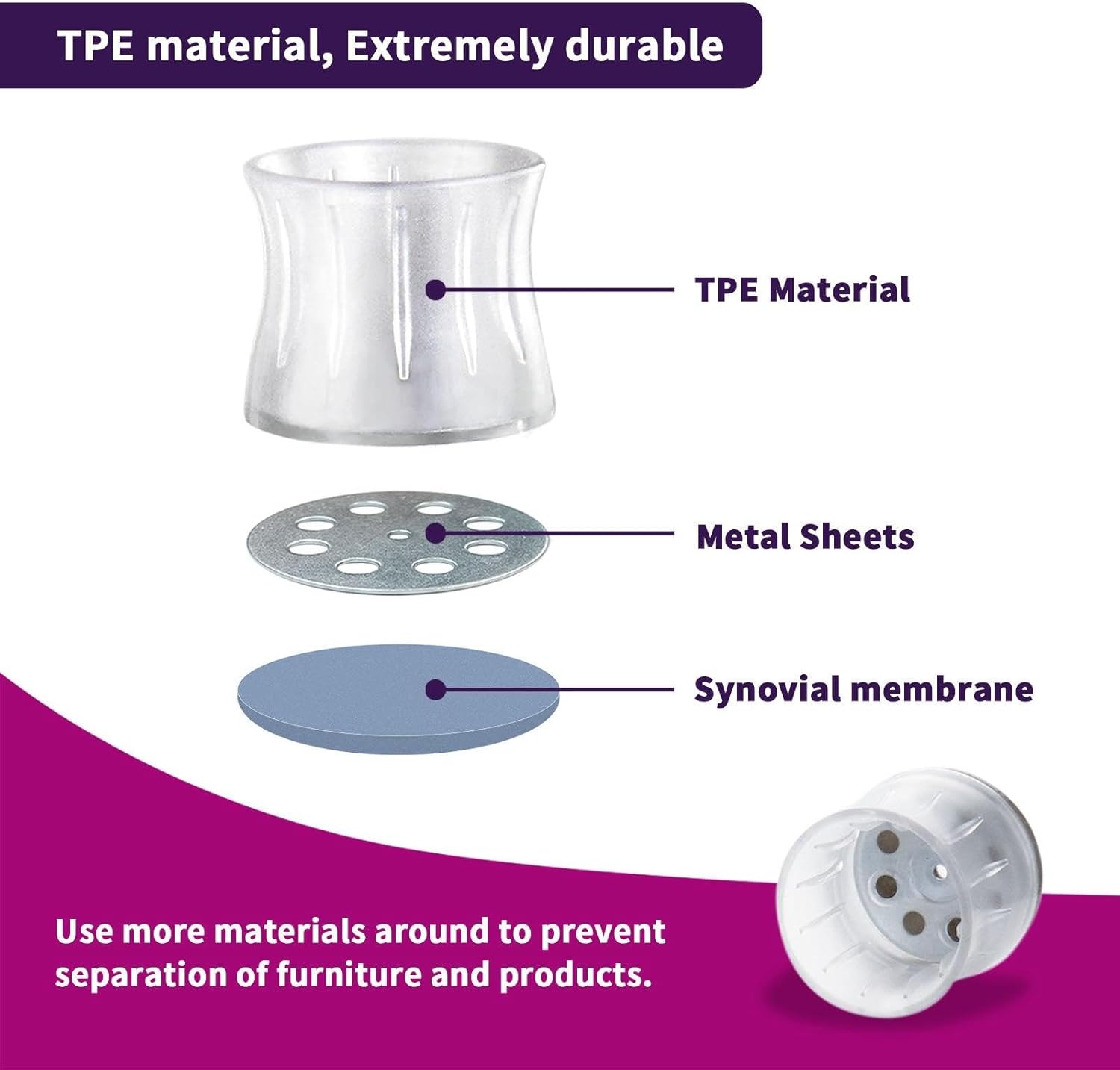 Crafted from premium materials, these protective bottoms are built to withstand heavy use while preventing scuffs, scratches, and gouges on all types of flooring — including hardwood, tile, laminate, and carpet. The clear, low-profile design blends in seamlessly with any furniture style, maintaining your room’s aesthetic without drawing attention.