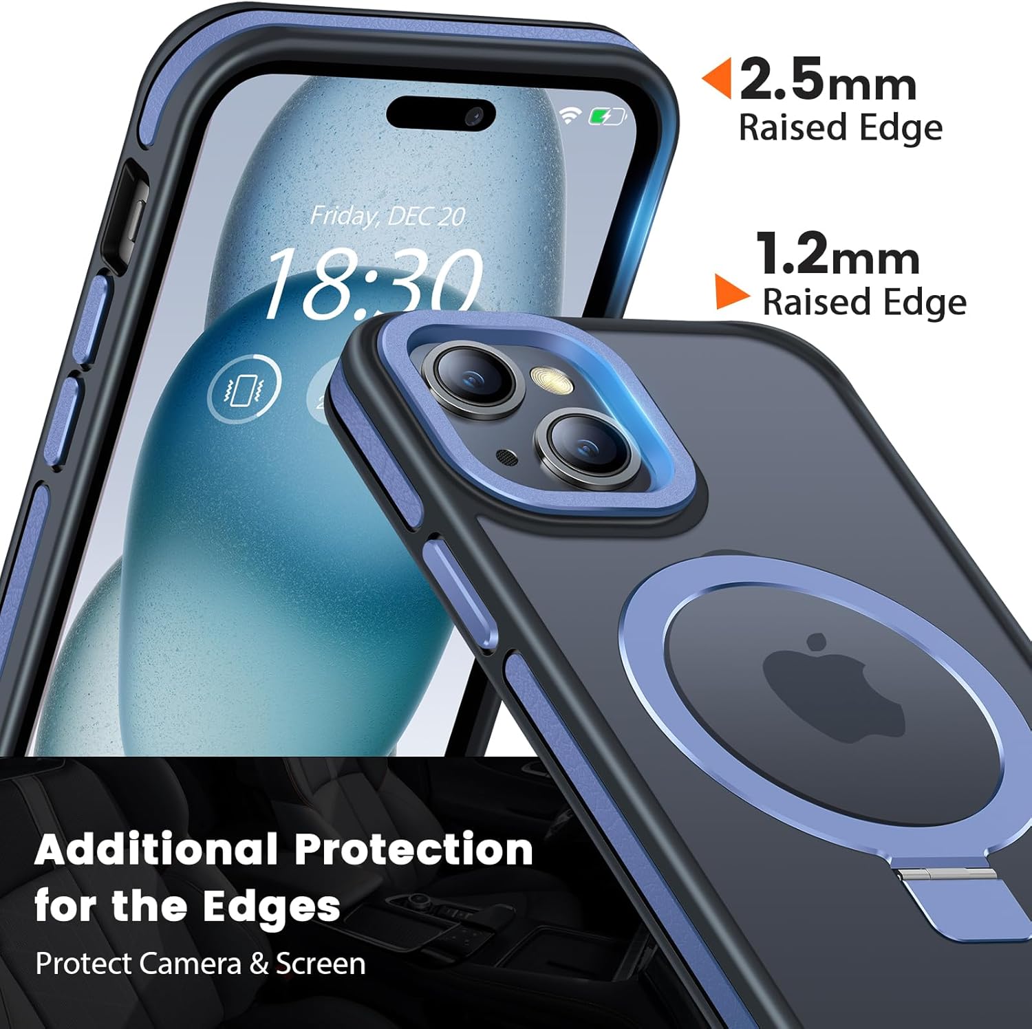 Military-Grade Drop Protection, Unafraid of falling: This iPhone 15 case has passed 3600 drop tests from a height of 2.5 metres. The third-generation U+ airbag and triple-reinforced frame absorb 99.9% of the impact. Raised edges of 2.5 mm for the camera and 1.2 mm for the display effectively prevent scratches. Whether you’re jogging outdoors or accidentally knocking it off your desk, your phone stays fully protected from life’s unexpected drops