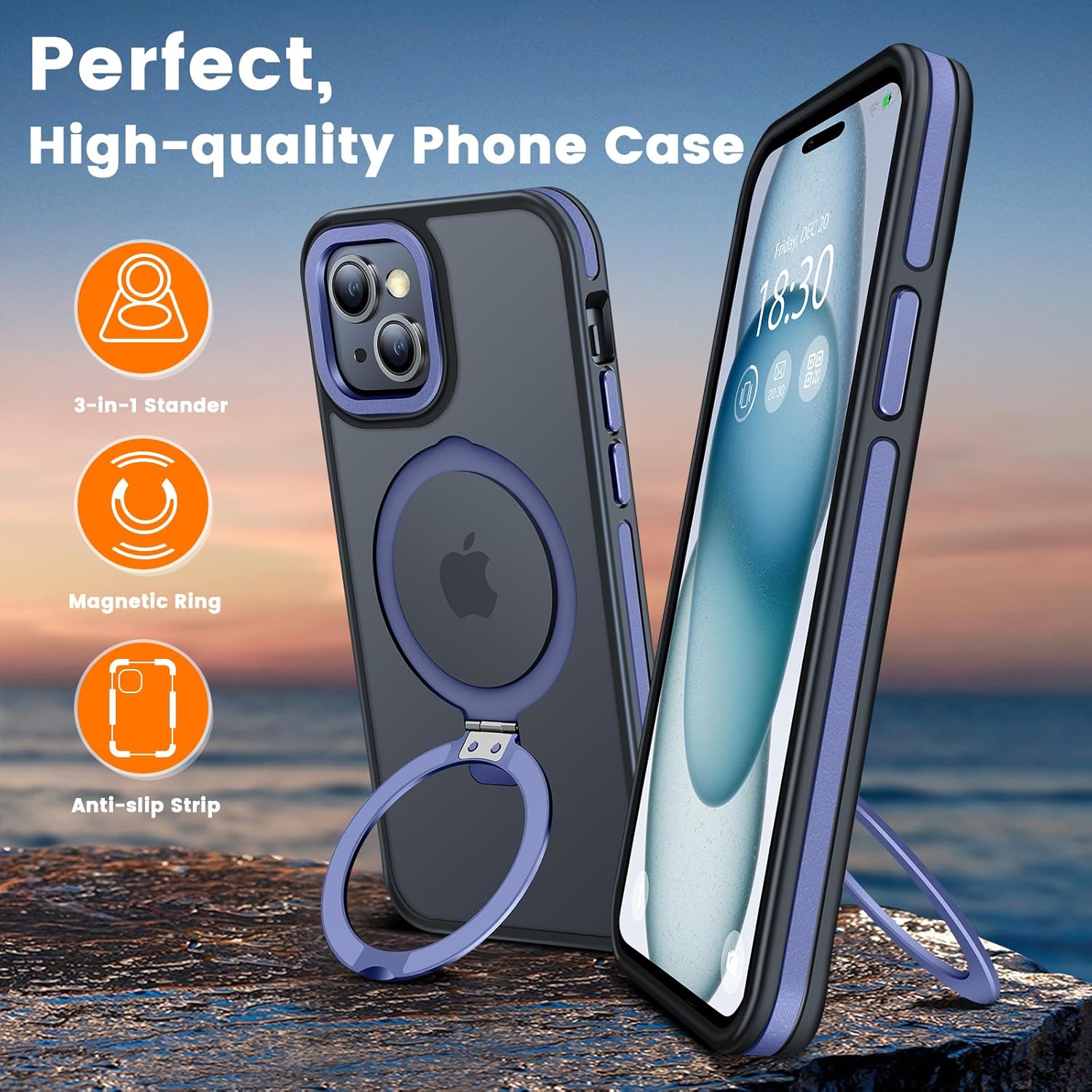 13 reviews for Magnetic Case for iPhone 15, with Invisible Ring Stand, Military Drop Protection, Shockproof Anti-Fingerprint Matte Protective Cover for iPhone 15, Blue