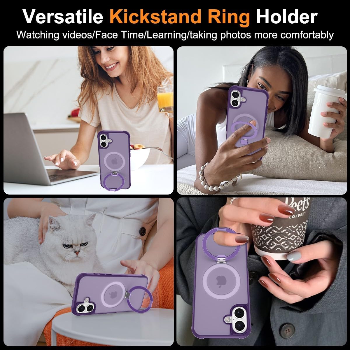 Magnetic Compatible with iPhone 17 Case with Stand [Military Grade Drop Tested][Compatible with Magnet] Ring Translucent Slim Hard Back Soft Edge, Purple
