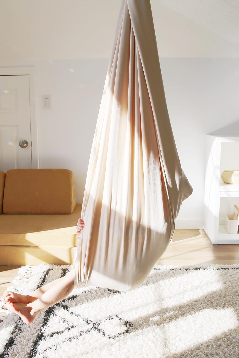 9 reviews for Marlowe & Co Indoor Outdoor Double Layer Cotton Sensory Compression Swing, Special Needs Therapy Swing, Holds 200 lbs, 360° Swivel Hardware Included (Oat)