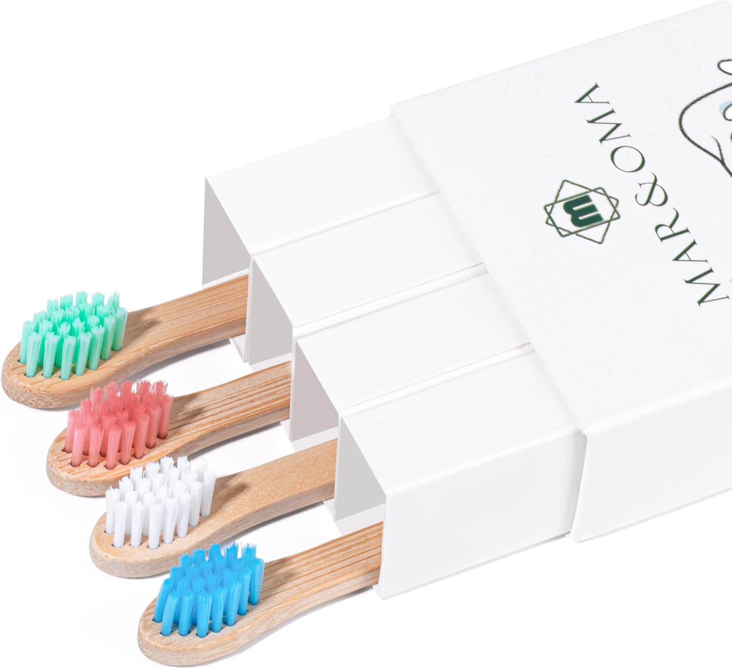 MAR&OMA Natural Baby Bamboo Toothbrushes | Organic | BPA-Free Bristles | Gentle Soft Bristle | Biodegradable Wooden Handle | Plastic-Free | Multicolor | Lightweight | Durable | Pack of 4