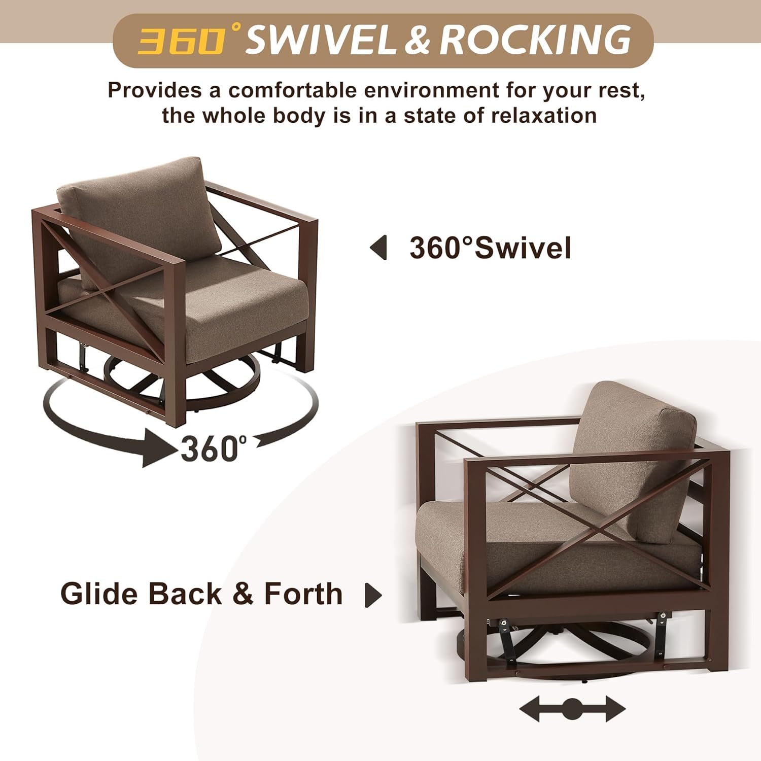 MBY Oversized Aluminum Patio Furniture Set, 7-Piece Outdoor Conversation Set with Swivel Rocking Chairs & Coffee Table, Modern Weather-Resistant Seating for Deck,Yard,Balcony,Poolside-Brown