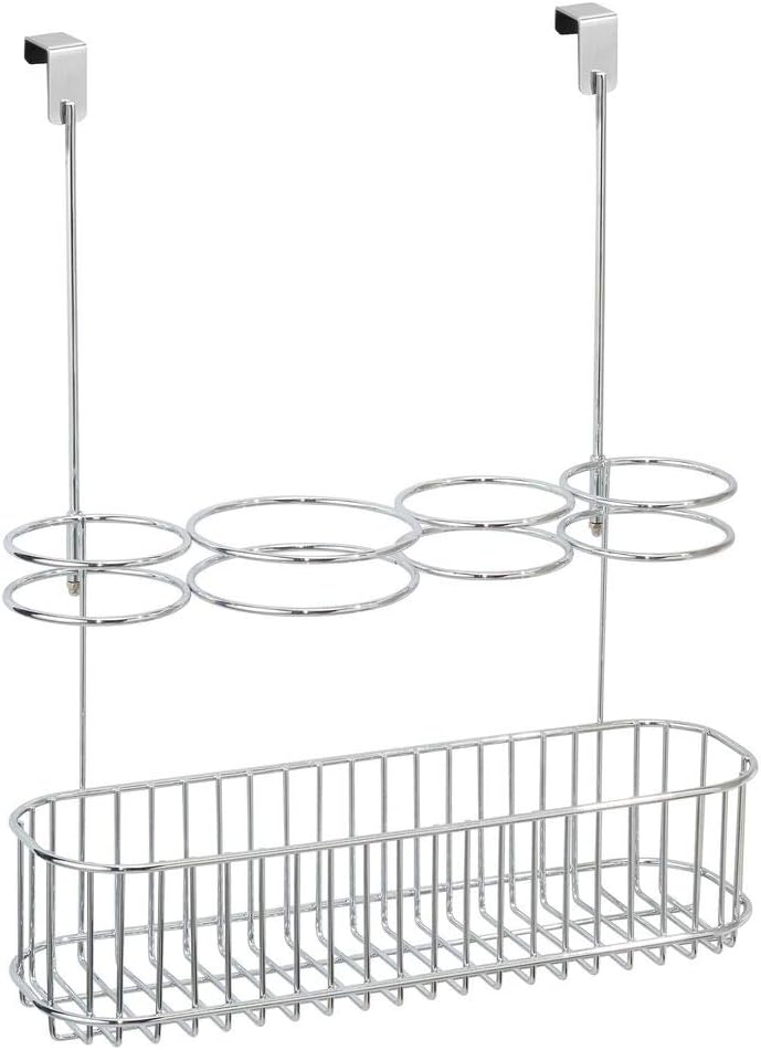 mDesign Metal Over Door Bathroom Hair Care & Styling Tool Organizer Storage Basket for Hair Dryer, Flat Irons, Curling Wands, Hair Straighteners – Hang Inside/Outside Cabinet Doors – Chrome