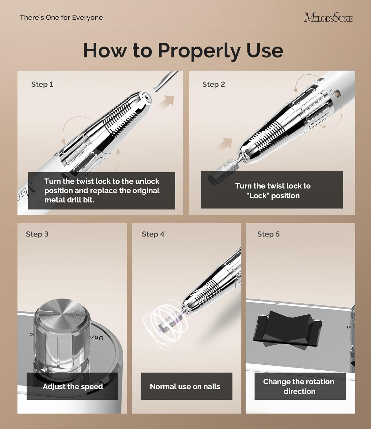 Professional Nail Drill: Real 35000 RPM rechargeable MM400C nail drill, coreless motor update from MelodySusie Sparkle Pro nail drill, better performance than before. More powerful, longer work hours, less overheating and breakdowns, less vibration and noise, less wearing and maintenance.Professional salon-level nail drill machine meeting all your manicure and pedicure needs.