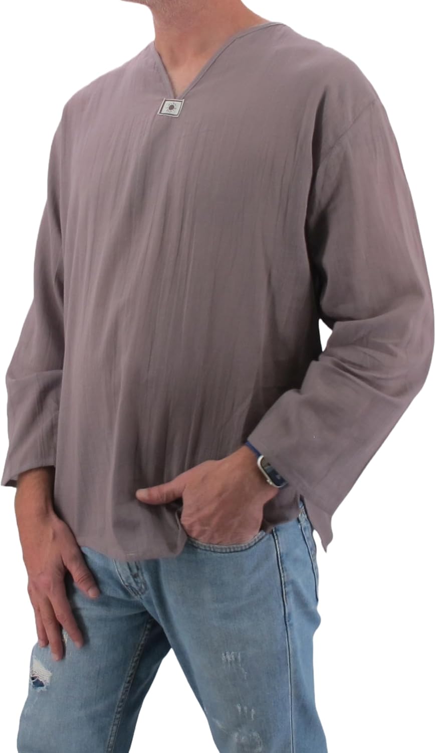 Men’s Summer T-Shirt 100% Cotton Hippie Shirt V-Neck Beach Yoga Top