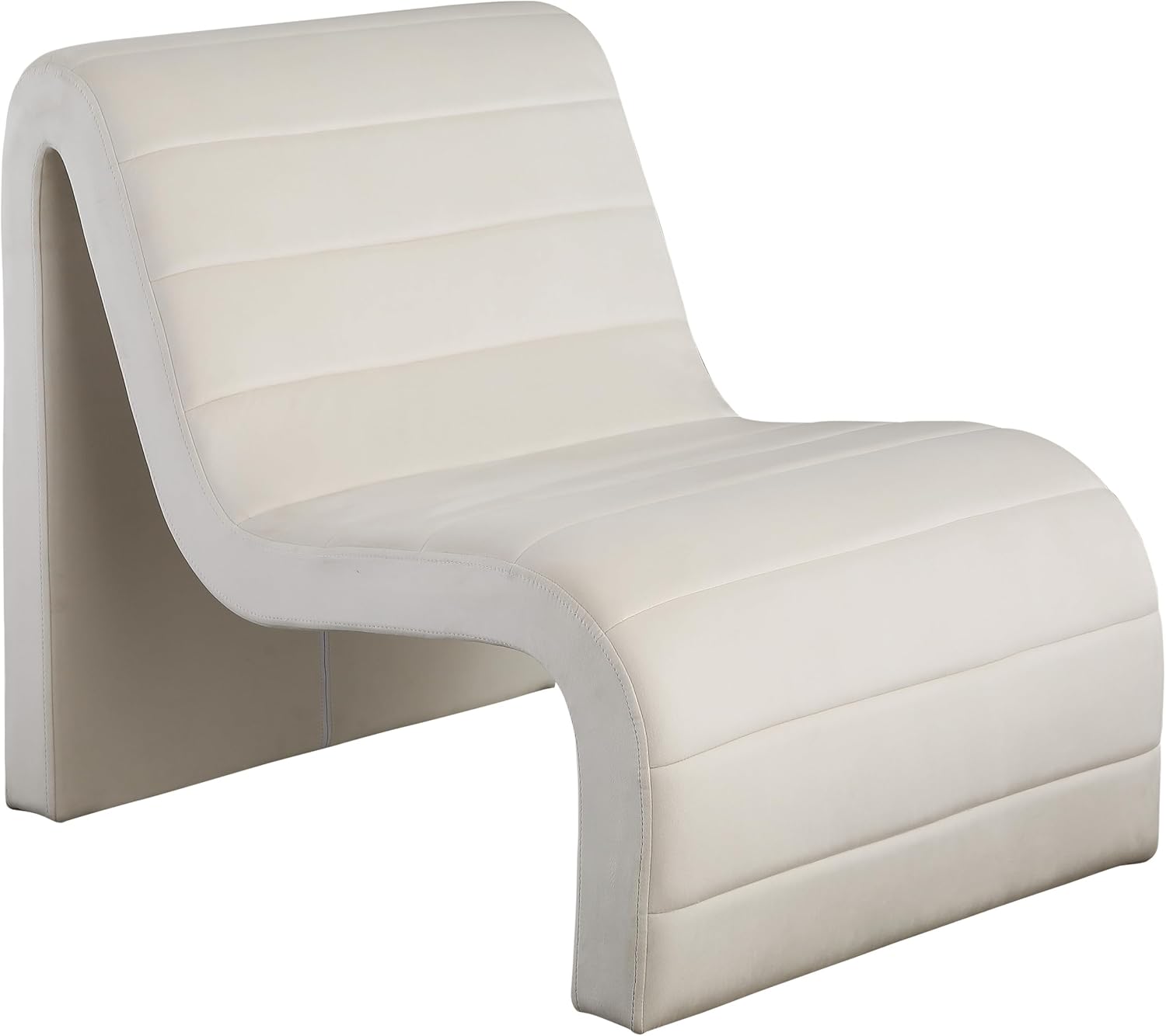 Meridian Furniture 403Cream Ivy Collection Modern | Contemporary Velvet Upholstered Accent Chair with Rich Cream Velvet, Channel Tufted Design, Curved Shape, 26.4″ W x 37.4″ D x 31.1″ H, Cream