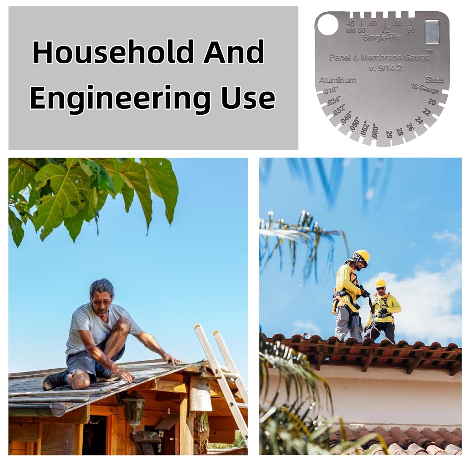 📏【Versatile for Multiple Roofing Materials】 Designed to measure a wide range of materials, including steel, aluminum, laminated shingles, and single/double-ply membranes. Clear slot-based scaling makes it easy to determine thickness quickly and accurately on-site.There is also a magnet design, which is easy to use.