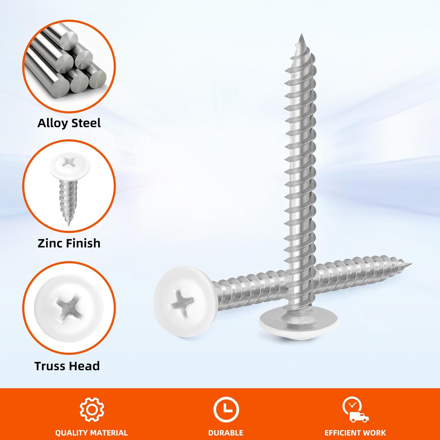 10 reviews for MewuDecor #8 x 1/2″ Truss Head Fast Self Tapping Screws, Alloy Steel Wood Screws, White Head, 100 PCS