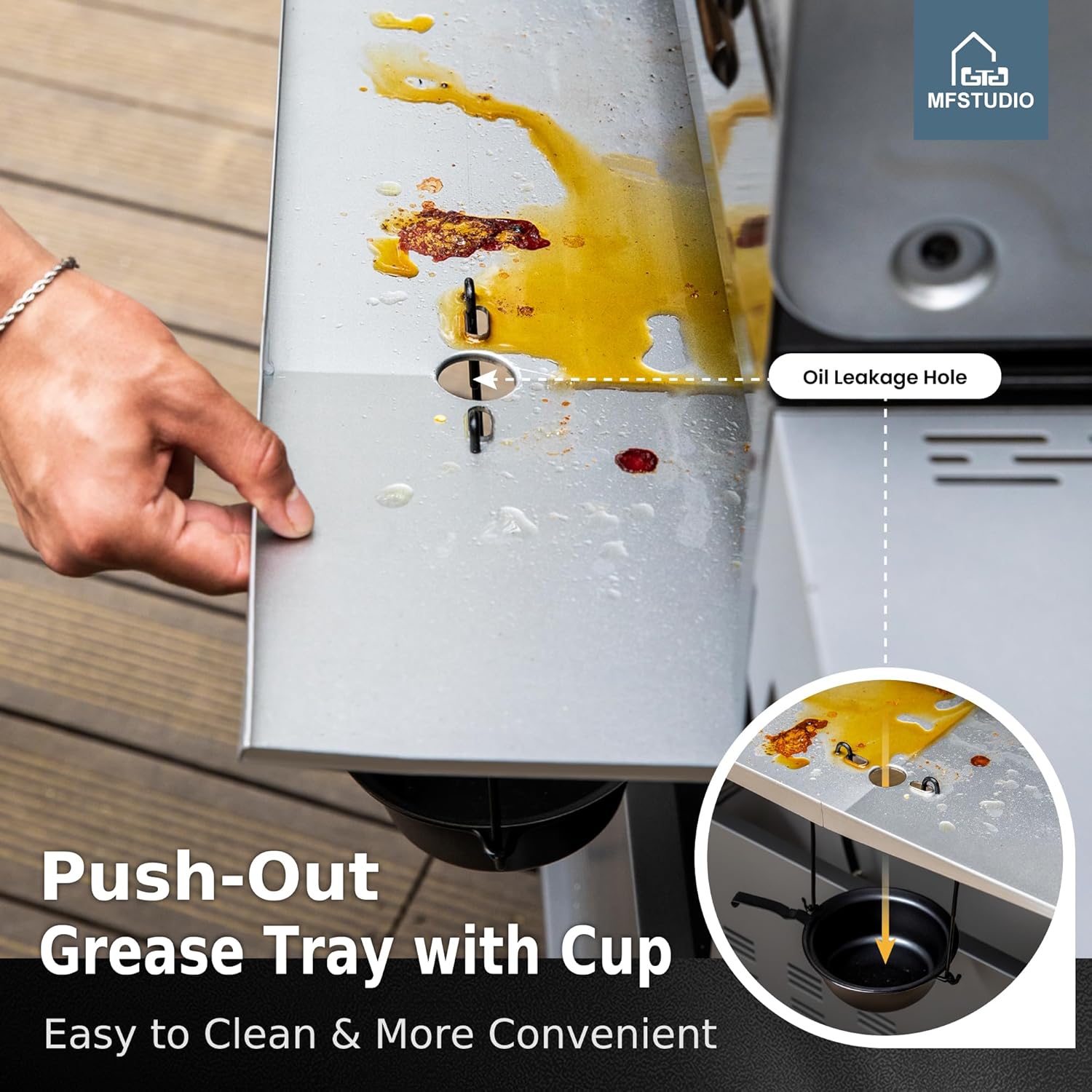 Easy to Clean Design:Non-stick surface and full-size pull-out grease tray make ite a breeze to clean
