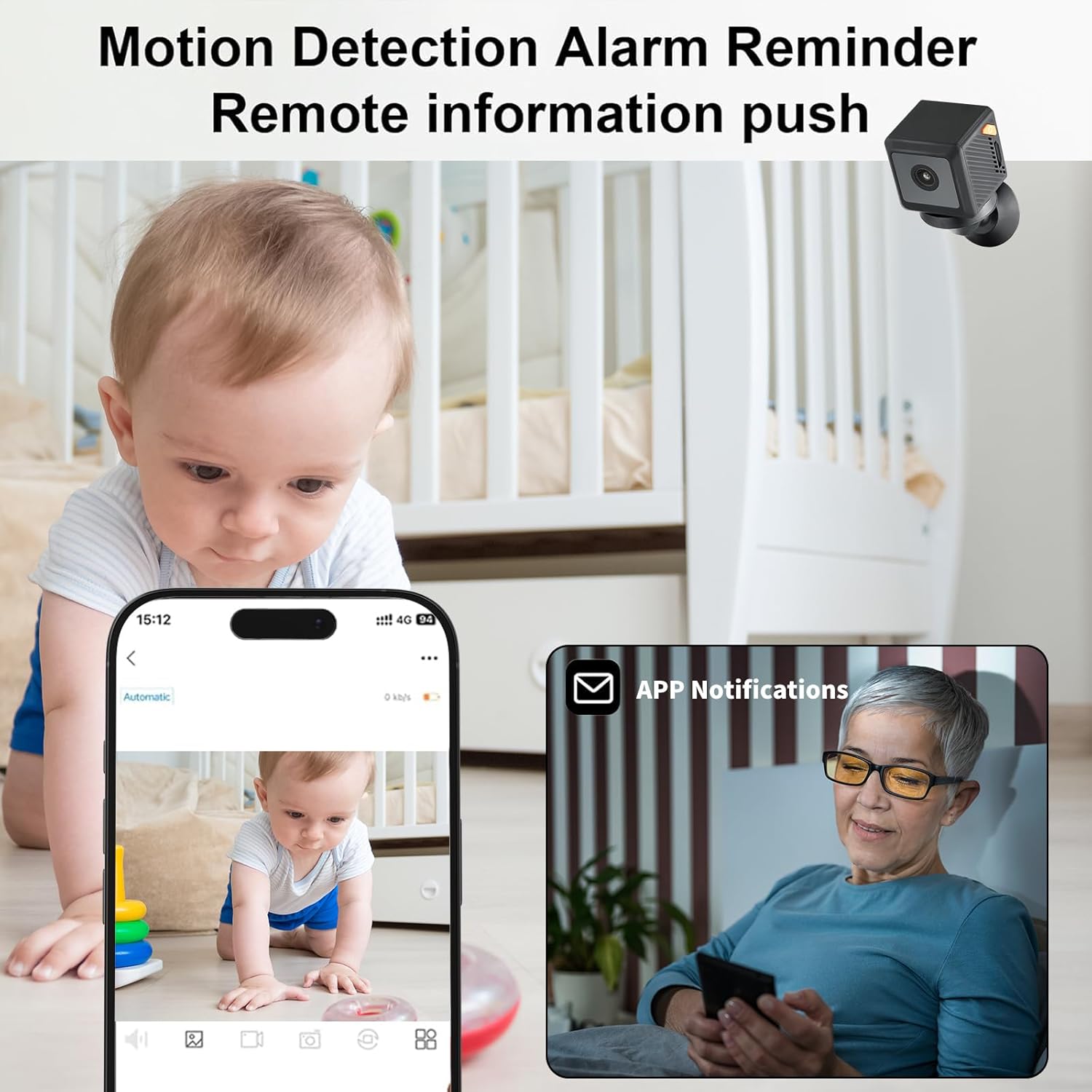 【Expandable Storage + Smart Alerts – Never Miss a Detail】 Supports micro SD card storage (not included) for playback of recorded footage. Get instant motion-triggered alerts to stay updated on critical events.