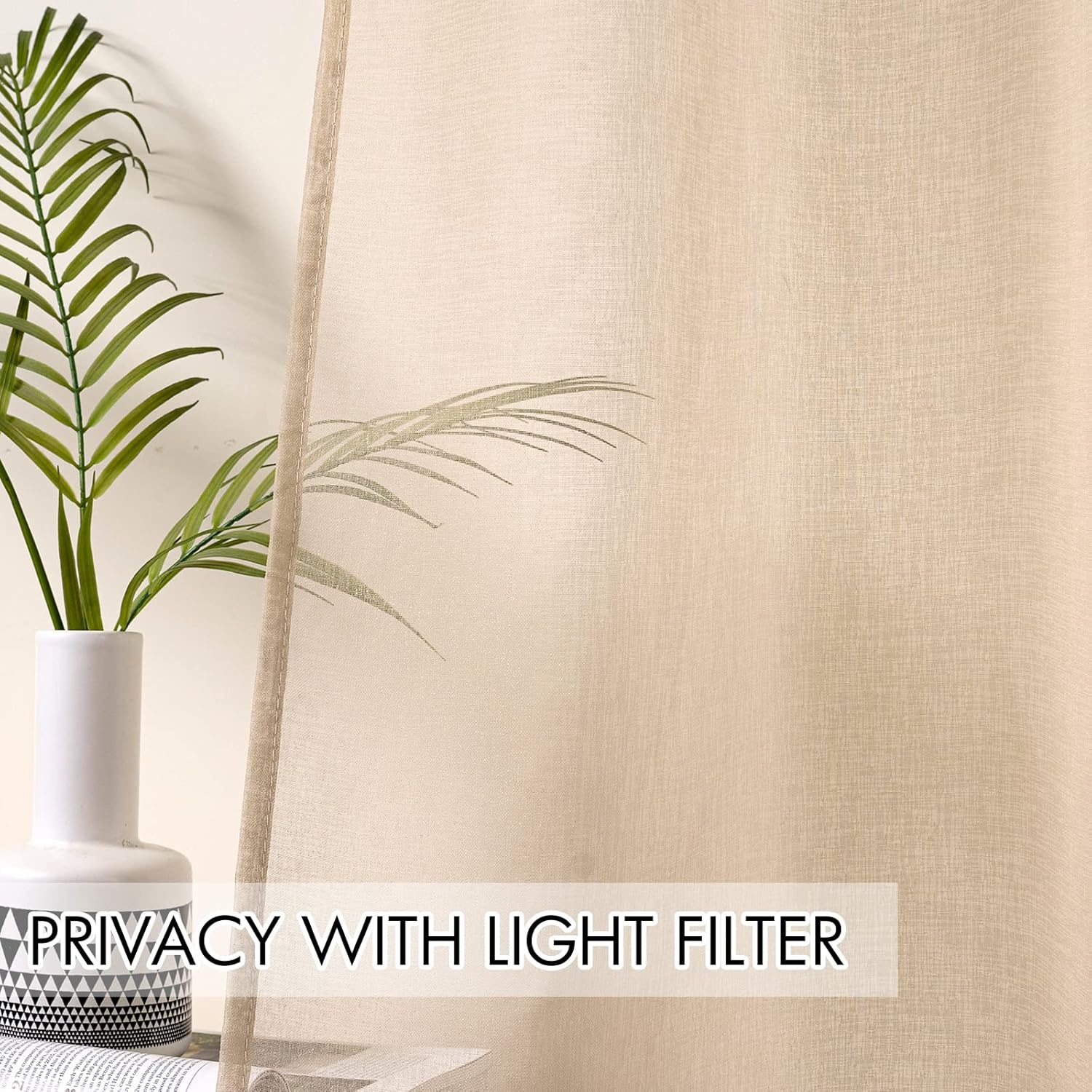 SEMI-TRANSPARENT – With using the linen textured material, sheer drapes help to enhance privacy while still letting sunlight coming through. Do stop the light glare and give you light & airy feel.