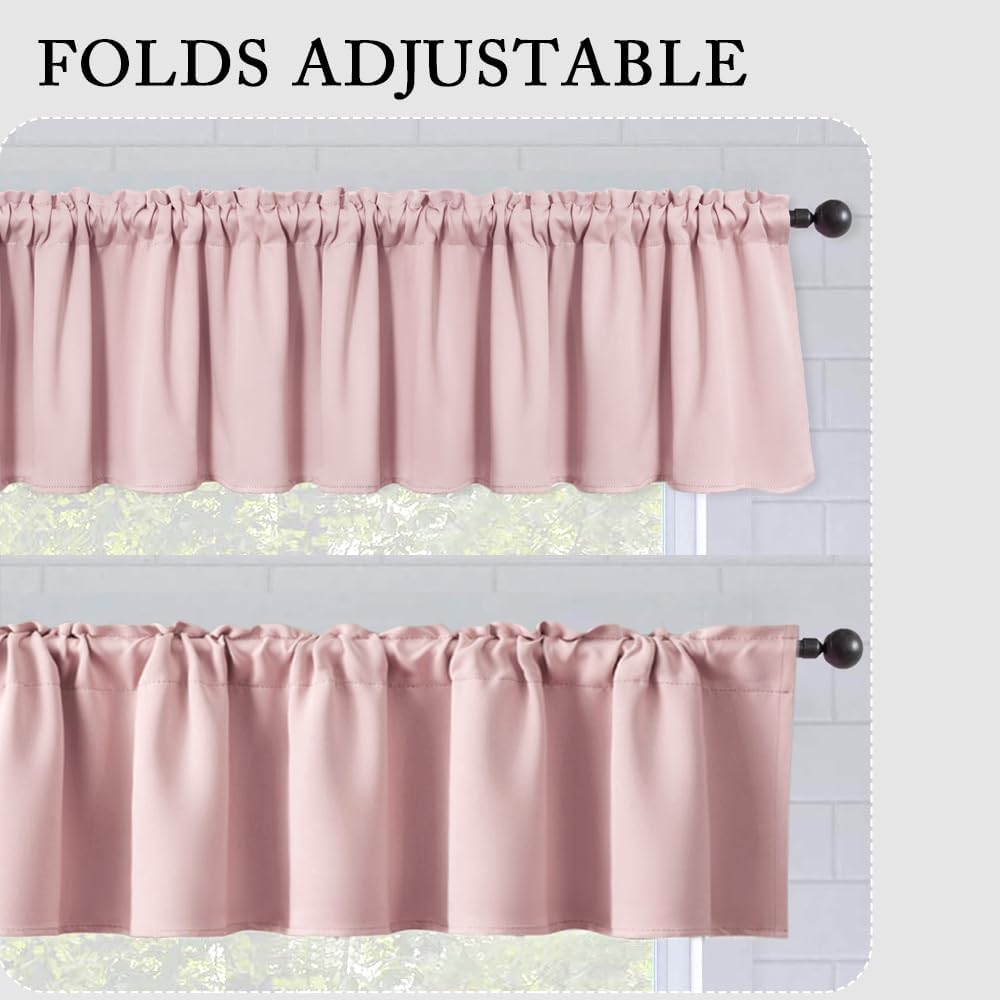 MIULEE Blackout Window Valance for Bedroom Kitchen Bathroom Living Room Darkening Rod Pocket Curtain Valance, Thermal Insulated Window Treatment 1 Panel, 52 x 18 Inches, Baby Pink