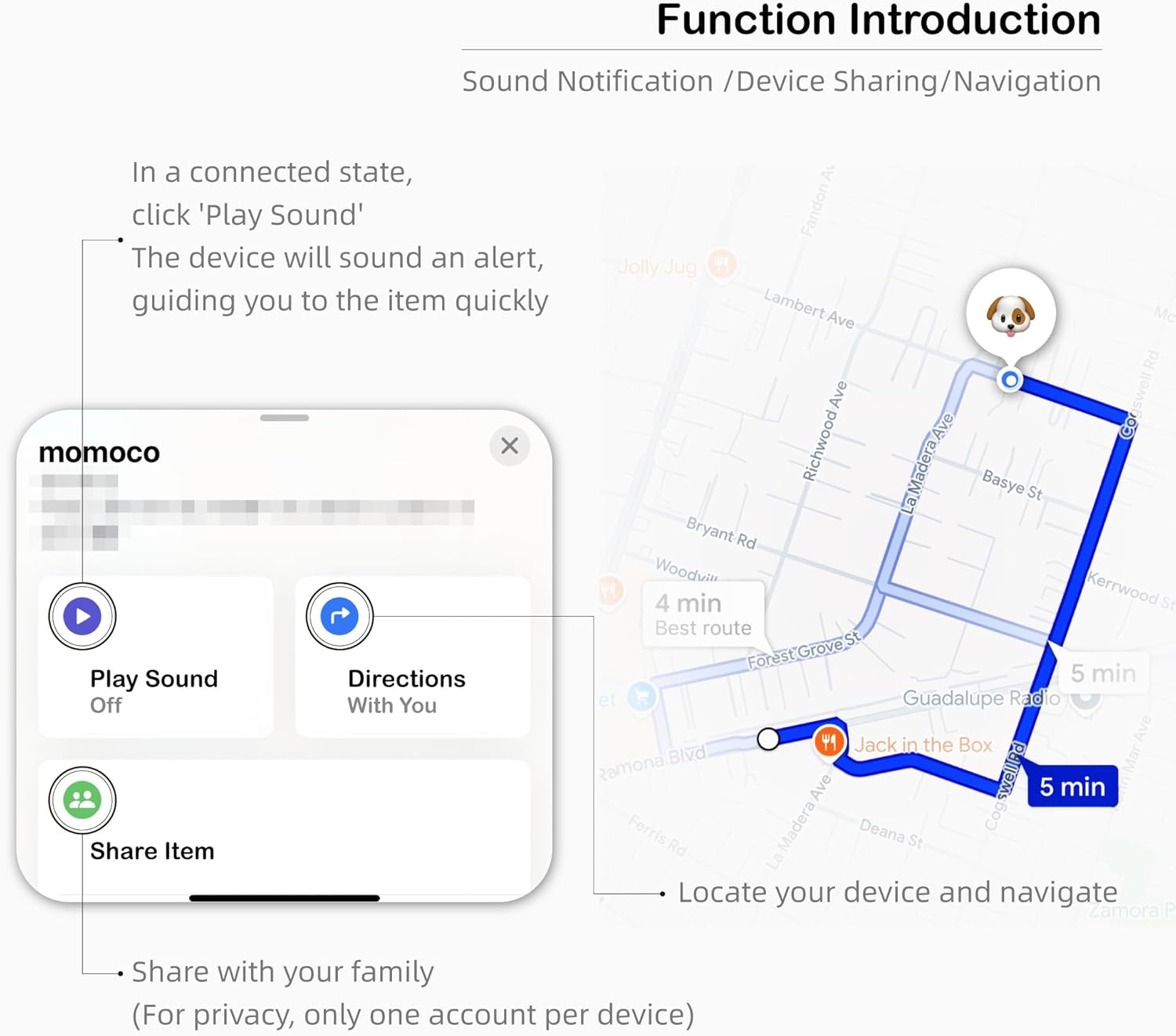 COMPATIBLE WITH APPLE FIND MY:MoMoCo tracker is designed exclusively for Apple iOS devices and does not support Android. With a simple one-tap setup, you can instantly connect the tracker to the Find My app on your Apple device, allowing you to track your pet’s every step and view their activity history.