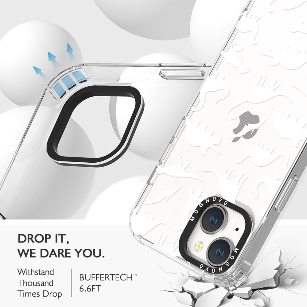 MOSNOVO Case for iPhone 14, [Buffertech 6.6ft Military-Grade Drop Protection] [Anti Peel Off Tech] Clear TPU Bumper Phone Case Cover Design – White Dinosaur