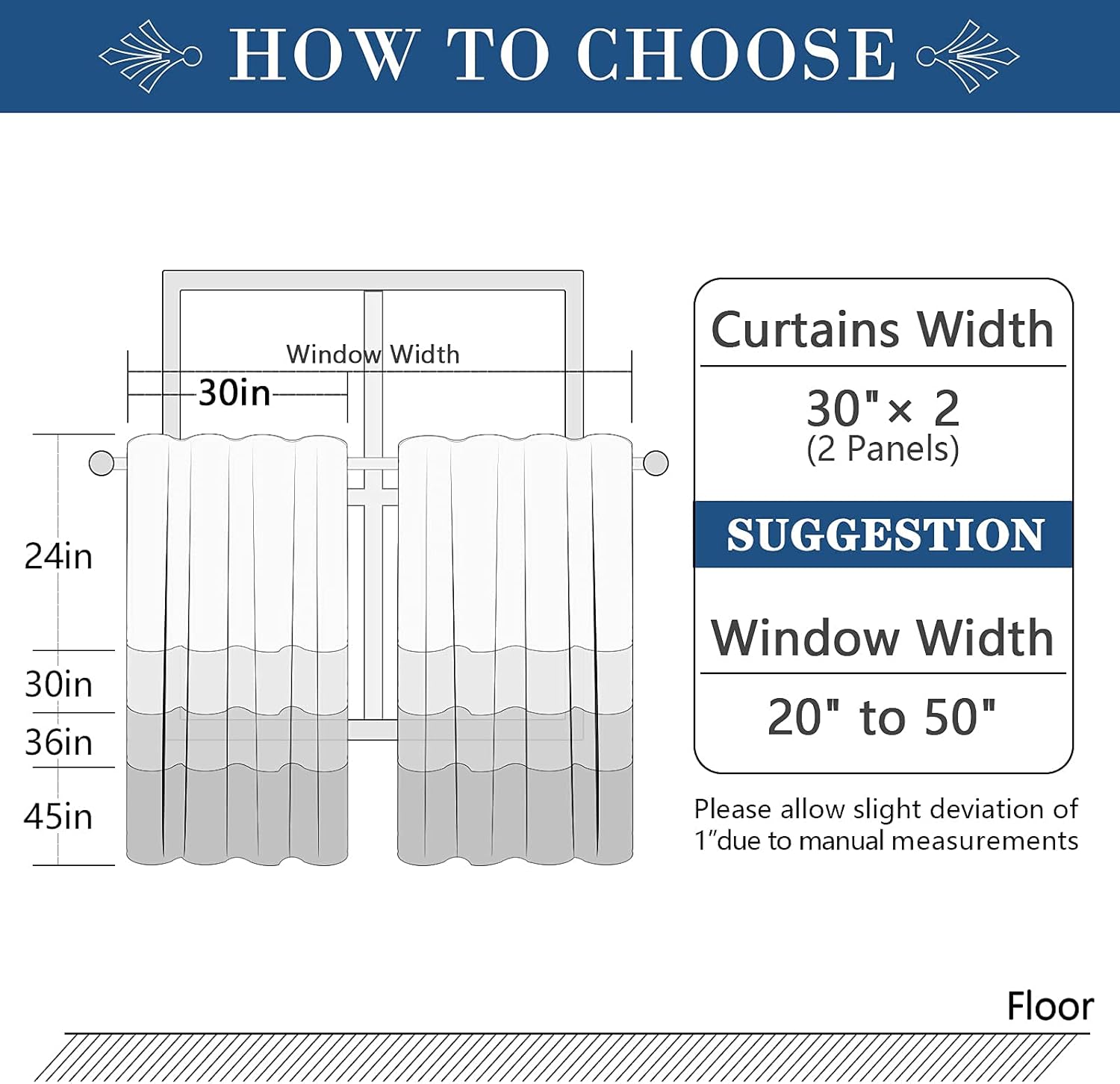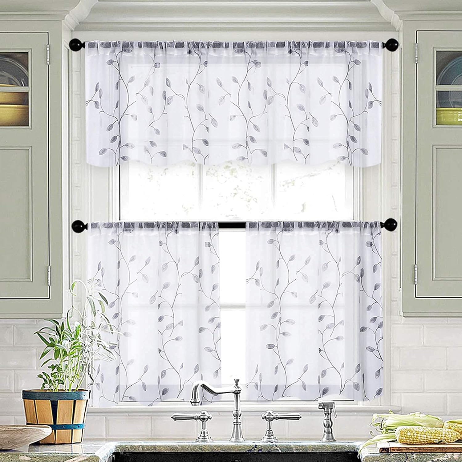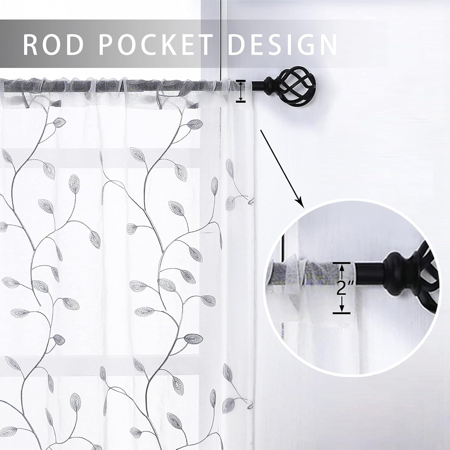 【Package Include】Each package includes 2 panels leaves embroidered sheer curtain tiers. Panel measures 30″W x 36″L. Set measures 60″W x 36″L. Pole pocket: 2″. Bottom hem: 1cm. There are 2 hanging methods: rod pocket or curtain clips(clips are not included), and both are easy to install.