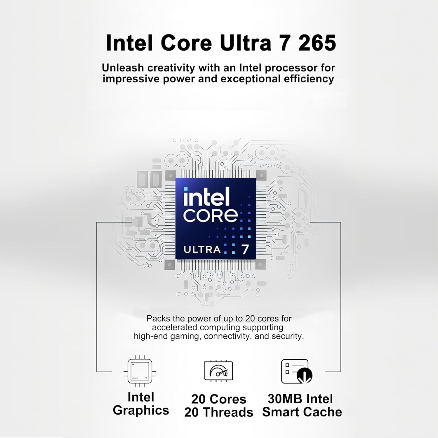 Intel 20-core Ultra 7 265 Processor (Base Clock 2.4GHz, Max Boost Clock Up to 5.3GHz, 30MB SmartCache, 20 Threads)