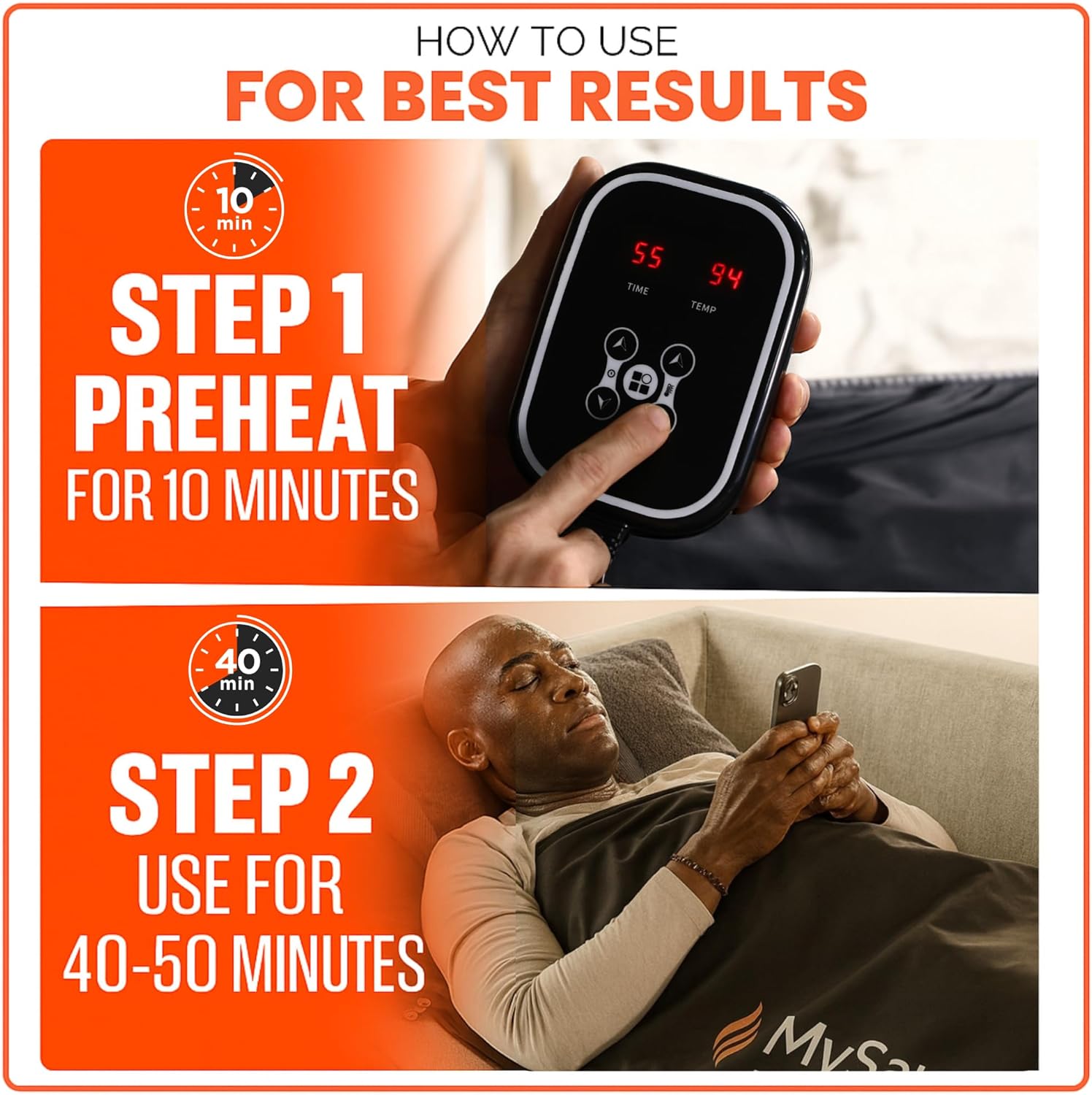 SAFETY YOU CAN TRUST – The My Sauna Blanket Infrared system is built with safety in mind. An intelligent control panel monitors heat levels to prevent overheating, while a thick, multi-layered cotton interior offers added comfort and protects skin from excess heat.