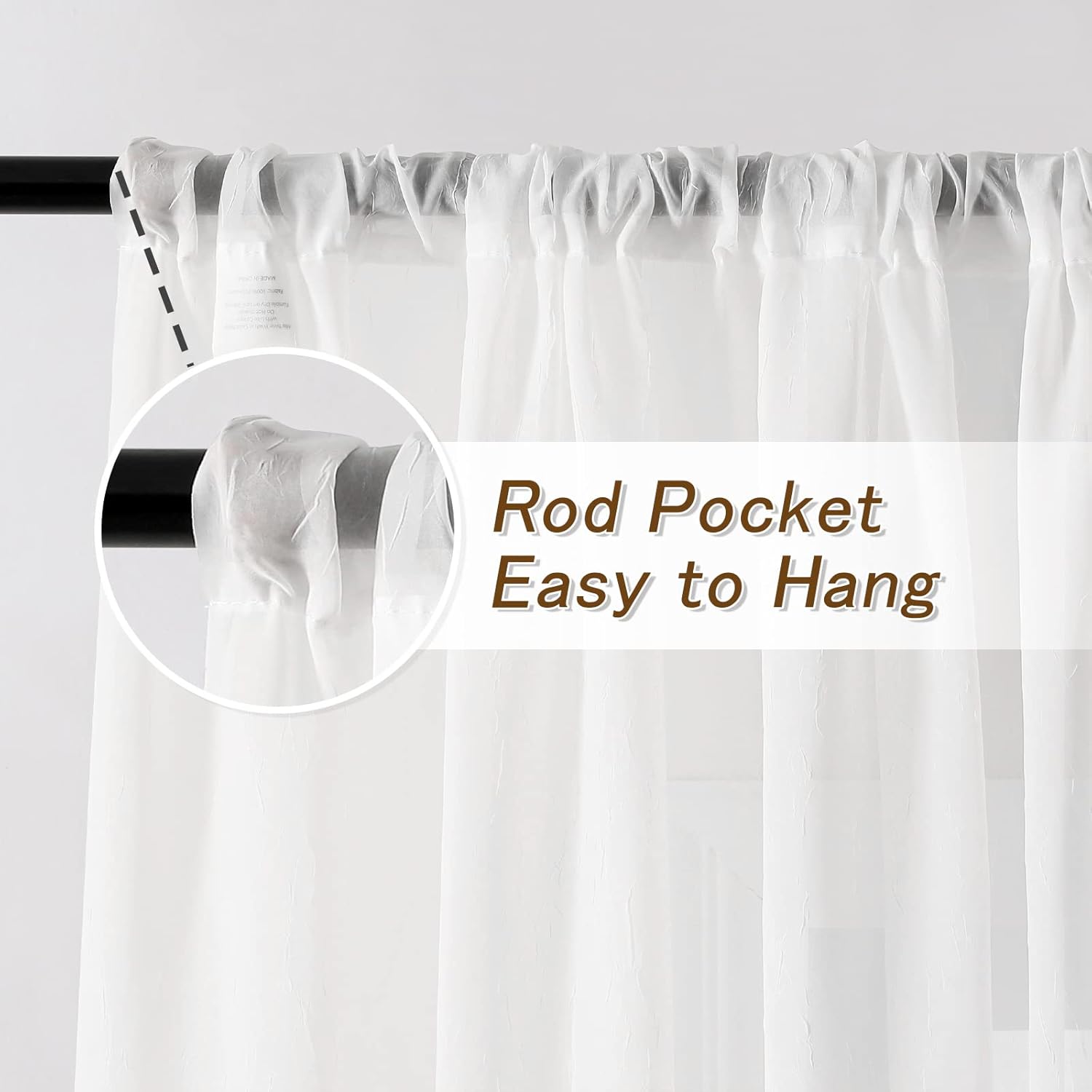 Product Size: Two (2) panels short white crushed voile sheer curtains per package, each panel measures 51″ W x 72″ L | Set measures 102″ W x 72″ L