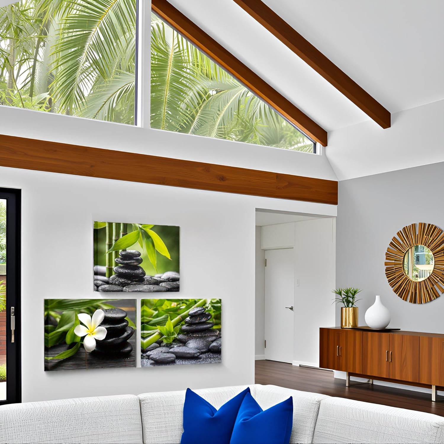 Nachic Wall Zen Pictures Wall Art Still Life Spa Stone Green Bamboo White Frangipani Flower Photo Prints on Canvas Spa Massage Treatment Painting for Bedroom Bathroom Decoration Ready to Hang