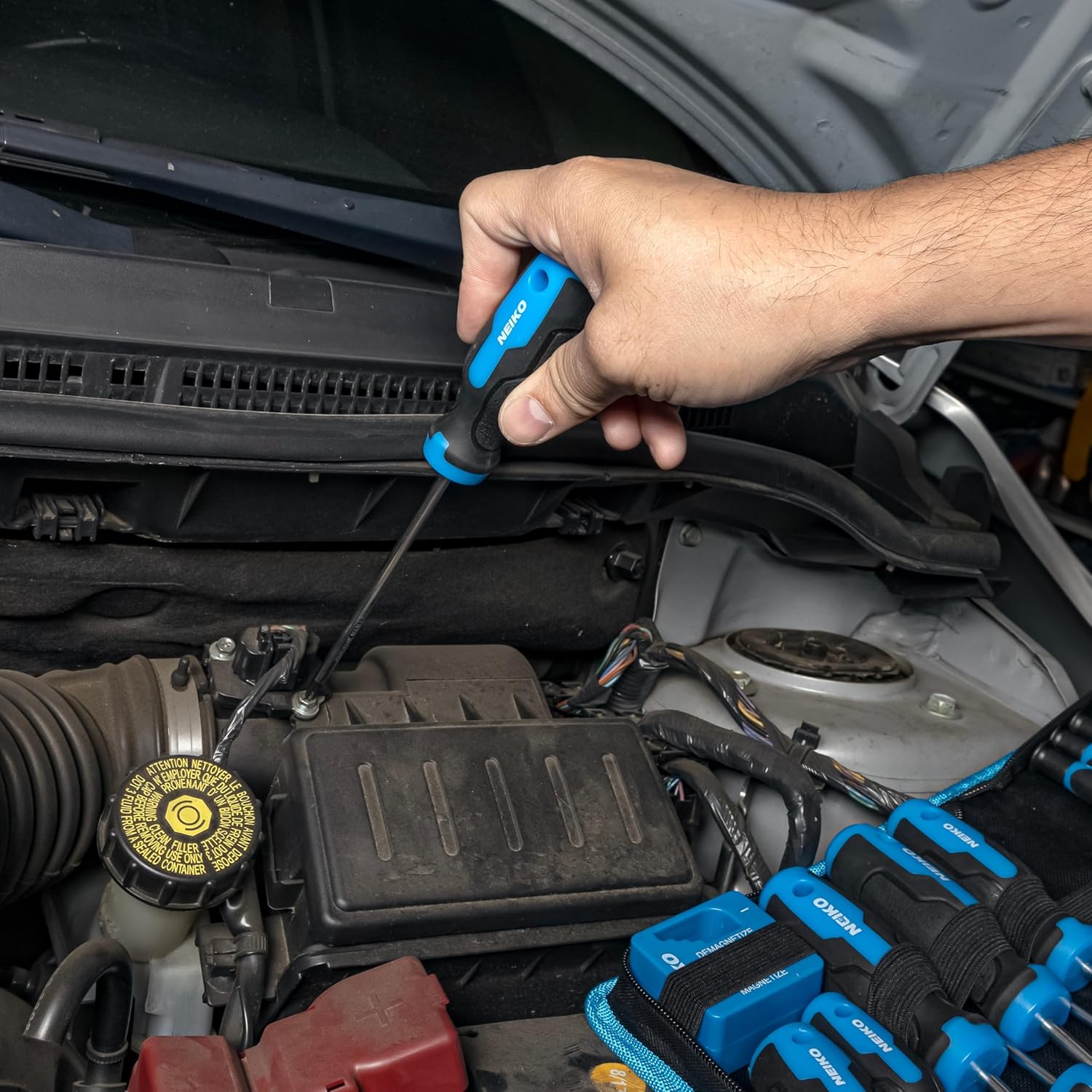 Introducing the NEIKO 01379A Master Screwdriver Set, a 32-piece magnetic precision screwdriver set that includes Phillips, flathead, slotted, and Torx drivers, all neatly organized in a convenient screwdriver case. This best screwdriver set is designed for precision work, with each screwdriver being magnetic for easy handling and featuring a comfortable grip for optimal control. The set also includes a magnetizer and demagnetizer, allowing you to customize the magnetic strength of your screwdrivers. Upgrade your tool collection with this high-quality precision screwdriver set with case, perfect for professionals and DIY enthusiasts alike. Get your hands on the NEIKO 01379A Master Screwdriver Set and experience the convenience and precision it offers. Inlcudes: 5Pcs Phillips screwdrivers #0x75mm, #1x100mm, #1x125mm, #2x100mm, #2x38mm 5Pcs Flathead screwdriver: 3.0x75mm, 4.0x100mm, 5.0x125mm, 6.0x100mm, 6.0x38mm 22-piece Precision screwdrivers set include: – 6 Pcs Slotted screwdrivers: 1.0mm, 1.2mm, 1.5mm, 2.0mm, 2.4mm, 3.0mm – 6Pcs Phillips screwdrivers: 0.8mm, 1.2mm, 1.5mm, 2.0mm, 2.5mm, 3.0mm – 9Pcs Torx screwdrivers: T2, T3, T4, T5, T6, T7, T8, T9, T10 – 1Pcs Magnetizer.