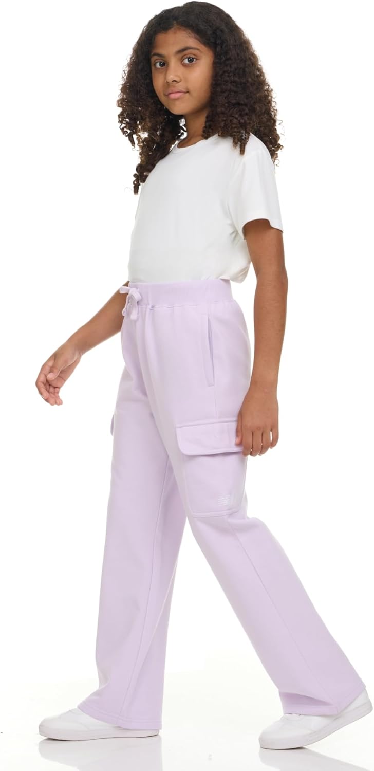 New Balance Girls Cargo Sweatpants – Soft Cotton Fleece Blend Pull-On Wide Leg Open Bottom Sweats Drawstring, Sizes 4-16