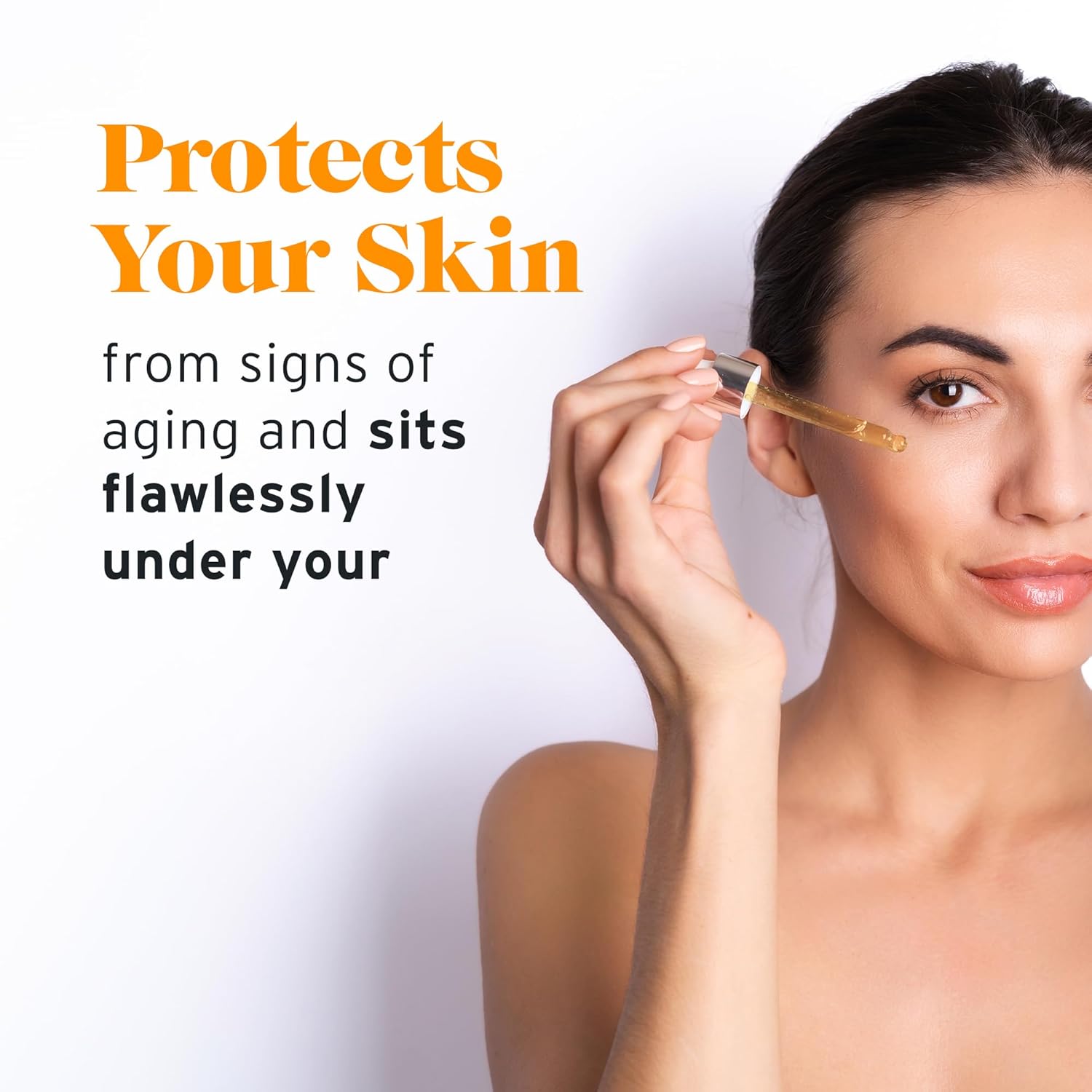 DEFEND AGAINST PREMATURE AGING: Safeguard your skin from aging free radicals! Our serum is enriched with potent antioxidants, including Pomegranate and Green Tea, known to help maintain youthful skin. Experience the benefits of ingredients that support your skin’s natural defense against premature aging. Plus, it works seamlessly under makeup, providing a smooth base for your daily routine.