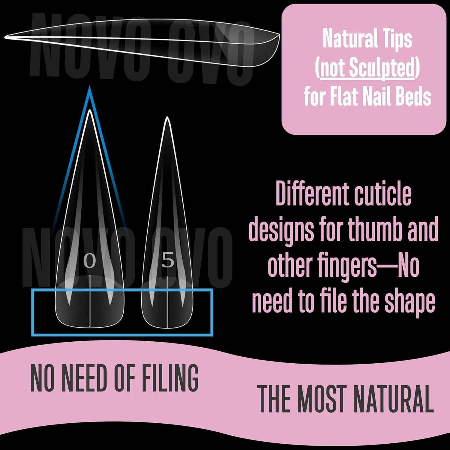 NOVO OVO Halloween XXL Straight Sharp Stiletto Natural Nail Tips Press on (not Sculpted), Normal Thick Extra Long Soak Off Soft Gel Fake Nail Extension, Full Cover False Nails for 12 Sizes 240 pcs