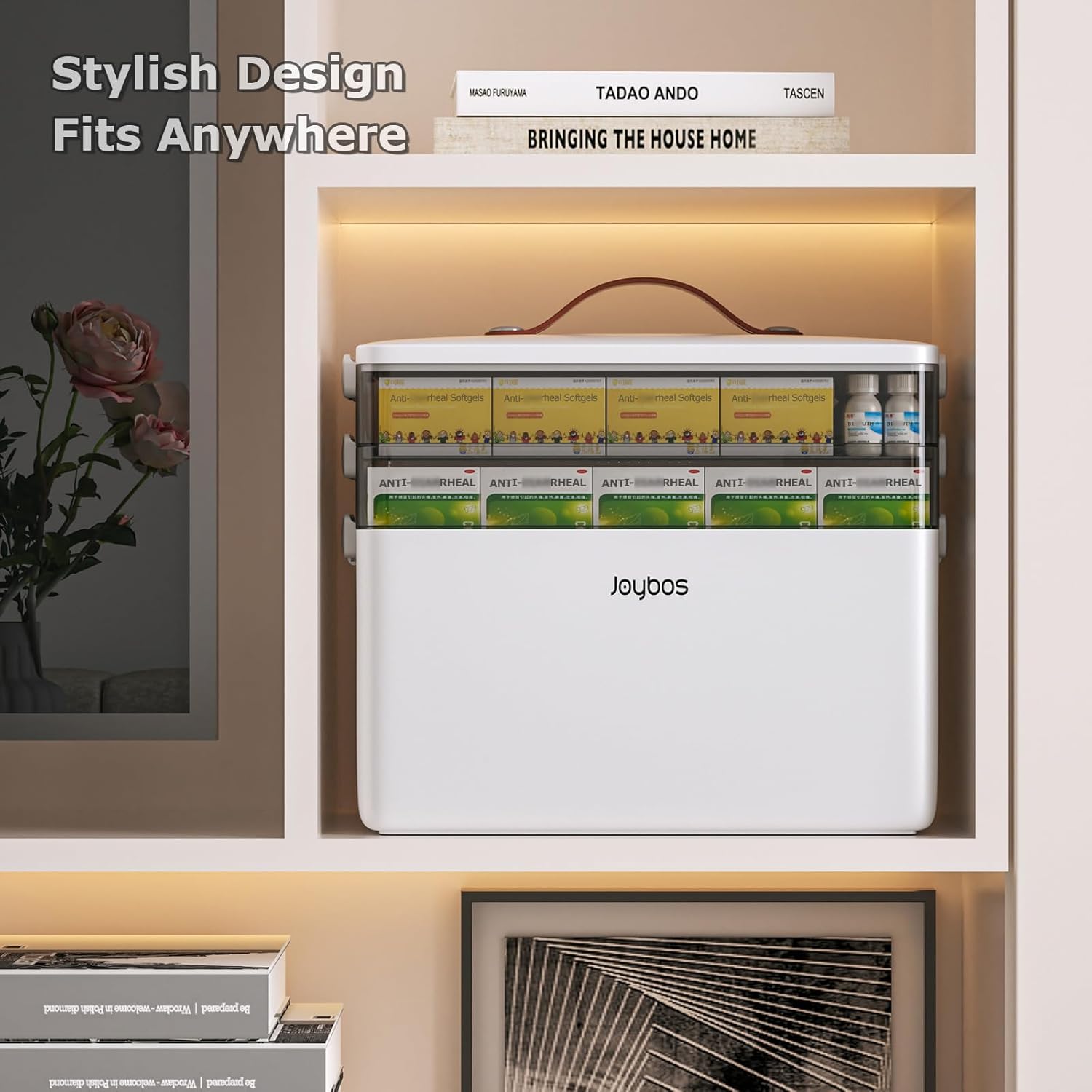 Spacious 3-Tier Design for Maximum Storage: This medicine storage box features a 3-tier design, providing ample space to organize medications, supplements, and vitamins. The large capacity ensures everything stays neat and easily accessible, making it perfect for both short and long-term use. It’s ideal for households with multiple users or anyone needing efficient storage for various pills, or as part of a medicine cabinet organizer.