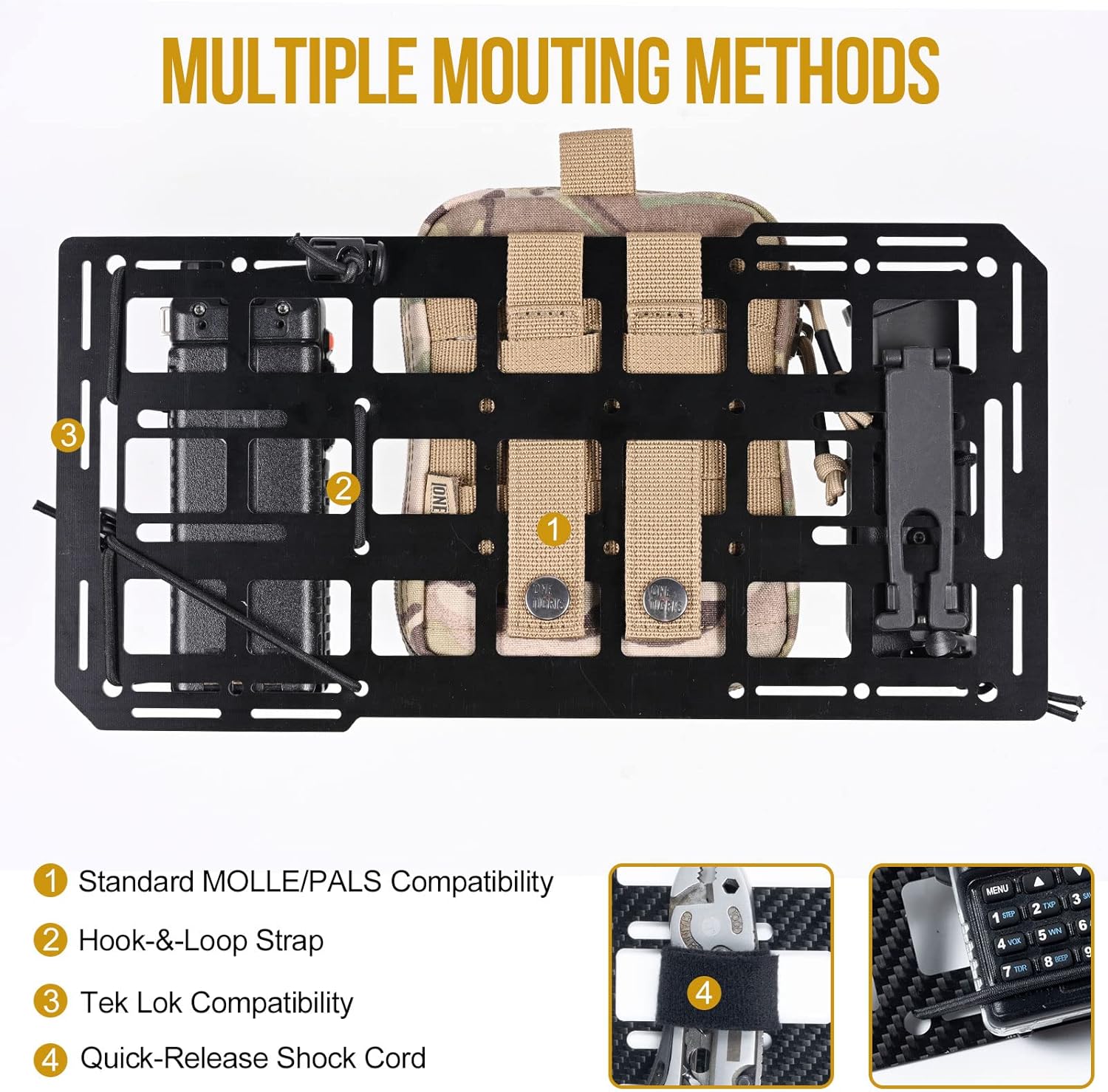 Multi-functional MOLLE Sun Visor Panel: Reengineer your space in seconds! This versatile car sun visor organizer has the ability to be customized and modified. It functions not only as a truck visor organizer but also serves as a rigid insert panel for outdoor backpacks, enabling easy organization while adding structural rigidity. Pro Tip: Use it as a tactical MOLLE headrest panel for rear-seat accessibility