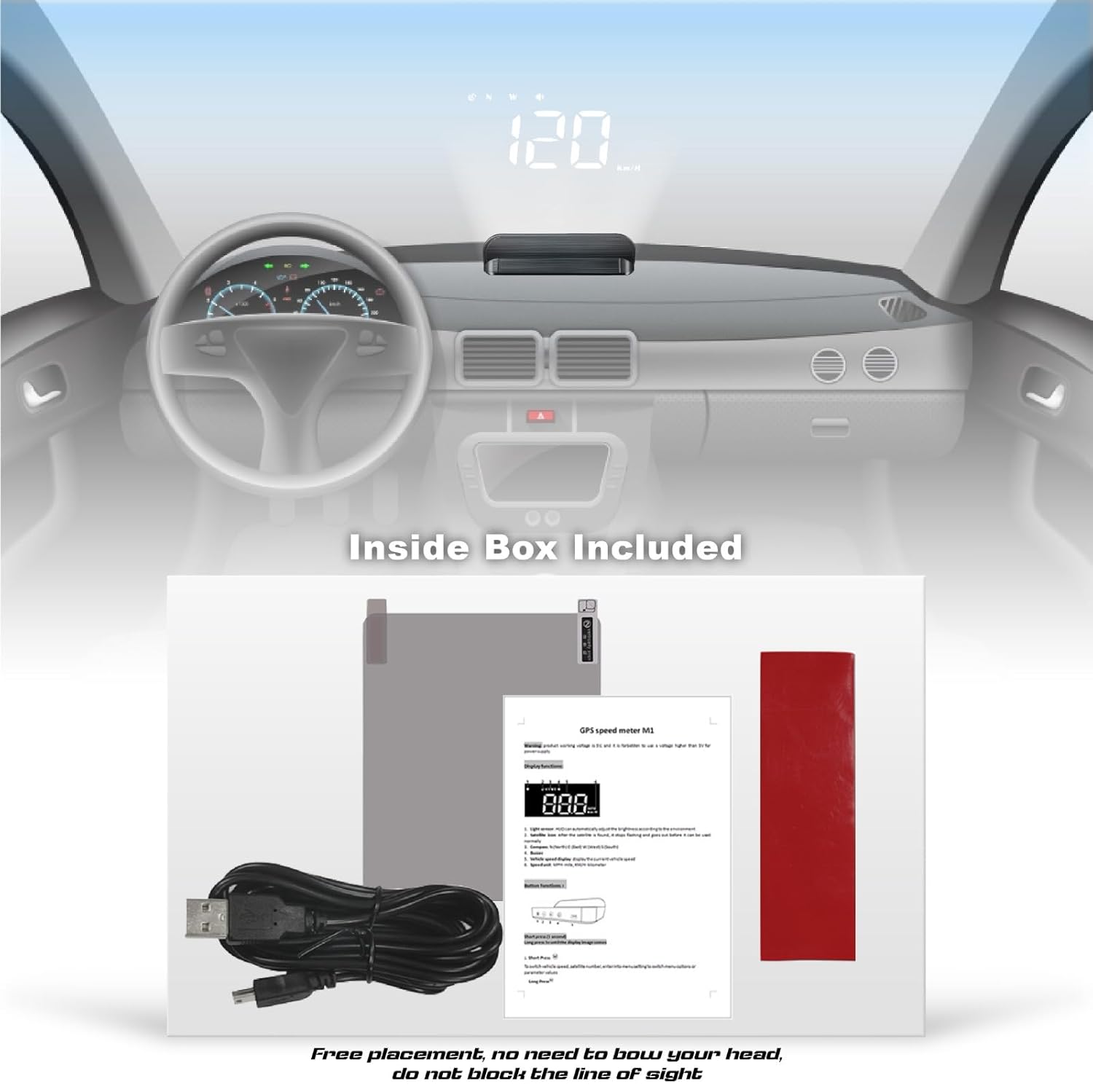 (HUD) -M1 is a GPS mode head up display. Unlike most head up displays on the market, our designers have fully utilized the characteristics of the windshield to create a simple white windshield HUD, which is easy to install and plug and play.