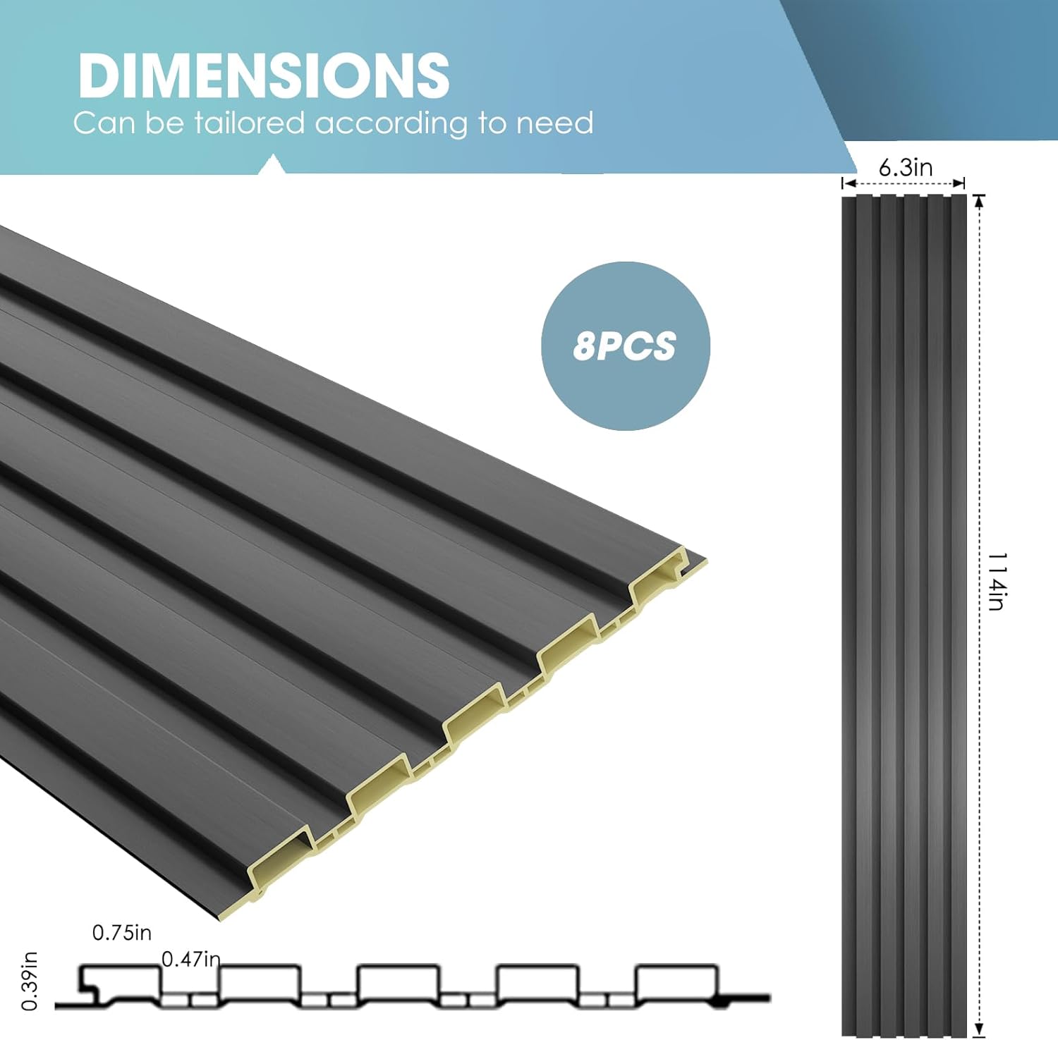 OUZUGIE WPC Acoustic Slat Wall Paneling, 8-Pack 114 x 6 Inches 3D Wall Panels for Interior Wall Decor,Living Room,TV Background,Study Room,Office Spaces,Bedroom,Low Grille (Metallic Dark Gray)