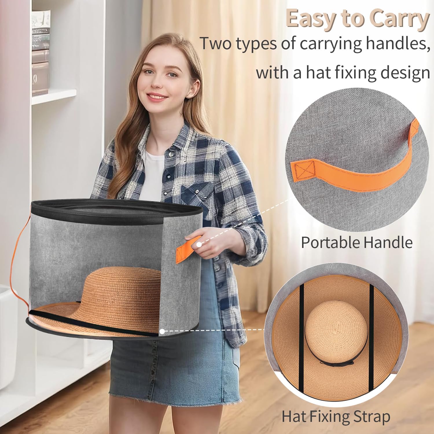 【Must-have for hat storage】The hat box has a simple appearance. Designed for large brims, it helps you say goodbye to dusty hats! The hat box with lid is suitable for cowboy hats, beach hats, bucket hats, felt hats, church hats, bonnets, berets, sun hats, wide-brimmed hats, baseball caps, etc., as well as other items such as clothes, toys, beach blankets, beanies and scarves.