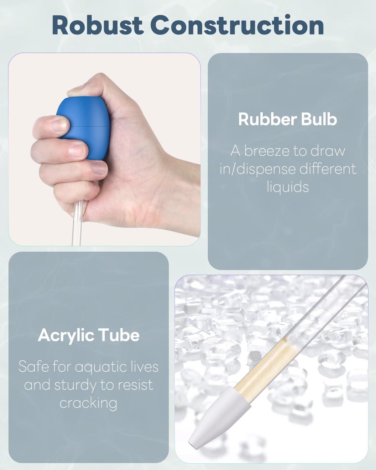 Versatile Use: This long pipette works great on feeding food or medicine to corals, marine or freshwater fish, shrimps, aquatic plants and more. Also perfect to be used as a fish excreta cleaner. Easily sucked away any tiny debris