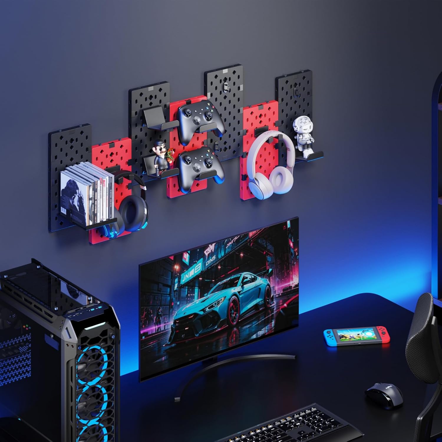 Efficient Gaming Storage: Keep your gear organized and easily accessible with this pegboard wall organizer. Perfect for storing controllers, headphones, and games, it adds both style and functionality to your gaming space.
