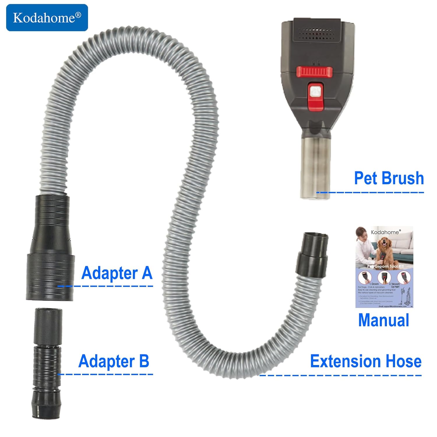 Pet Shedding Brush Vacuum Attachment, Grooming Tool Kit for Most Vacuums, Dog Hair Deshedding Groomer with Extension Hose & Universal Adapters