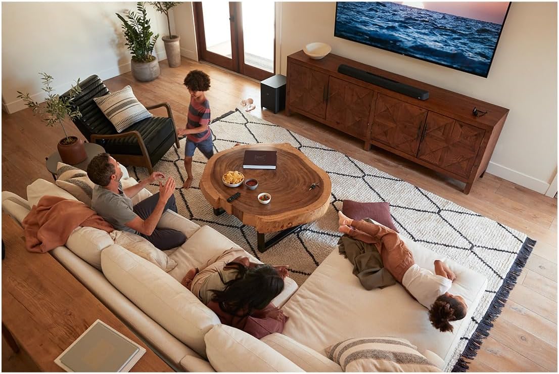 This package combines a high-performance 6.1 channel soundbar system with a premium HDMI cable to deliver a complete, immersive home theater solution. The sound system features an 11-driver sound bar with up-firing height speakers and a powerful 10 Inch wireless subwoofer, producing expansive Dolby Atmos and DTS:X 3D audio with deep, impactful bass. Advanced SDA technology enhances the soundstage for a more lifelike experience, while VoiceAdjust ensures dialogue remains clear and balanced against background effects. Multiple sound modes, including Movie, Music, TV, and Night, let you customize performance for any content, and wireless streaming is available through AirPlay 2, Chromecast, Spotify Connect, Bluetooth, and more. With 3-in/1-out HDMI switching, eARC support, and optical connections, setup is simple and compatible with virtually any TV, while the option to expand with wireless surround speakers offers even greater immersion. The included HDMI cable supports up to 48Gbps bandwidth, handling high-frame-rate gaming and resolutions up to 10K for next-generation performance. Constructed with silver-plated copper conductors and advanced noise dissipation technology, it ensures clean, distortion-free signal transfer, while enhanced eARC support enables uncompressed multichannel audio for theater-like sound at home. Fully backward compatible with 4K devices, it integrates seamlessly into existing setups while preparing your system for the future of entertainment. Together, this package provides powerful sound, stunning clarity, and future-ready connectivity for movies, music, TV, and gaming.