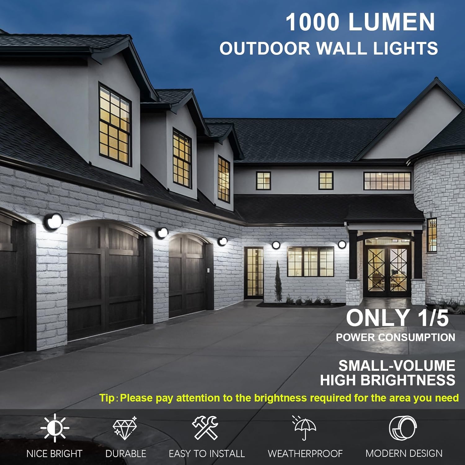 Surprisingly Excellent Lighting: 1000LM High brightness LED outdoor wall light, RA>85 6000k Daylight light is soft and not harsh, round design realizes wide angle lighting, even light without dark corners and shadows, even at dark night, it can also clearly illuminate every corner