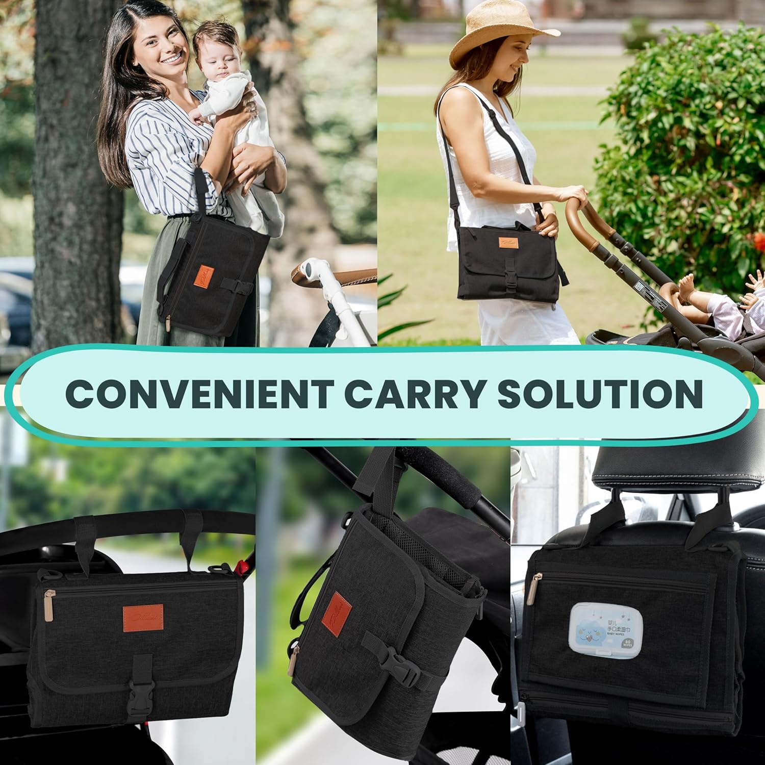 Convenient carry solution – Our portable changing pad’s versatile straps provide seamless attachment to strollers, car headrests, and bags. Offering multiple carrying options, it can be used as a clutch bag and also as a shoulder bag. This multi-purpose handle ensures easy and convenient carrying, making it the ideal solution for parents on the move—versatile, adaptable, and ready for any situation.