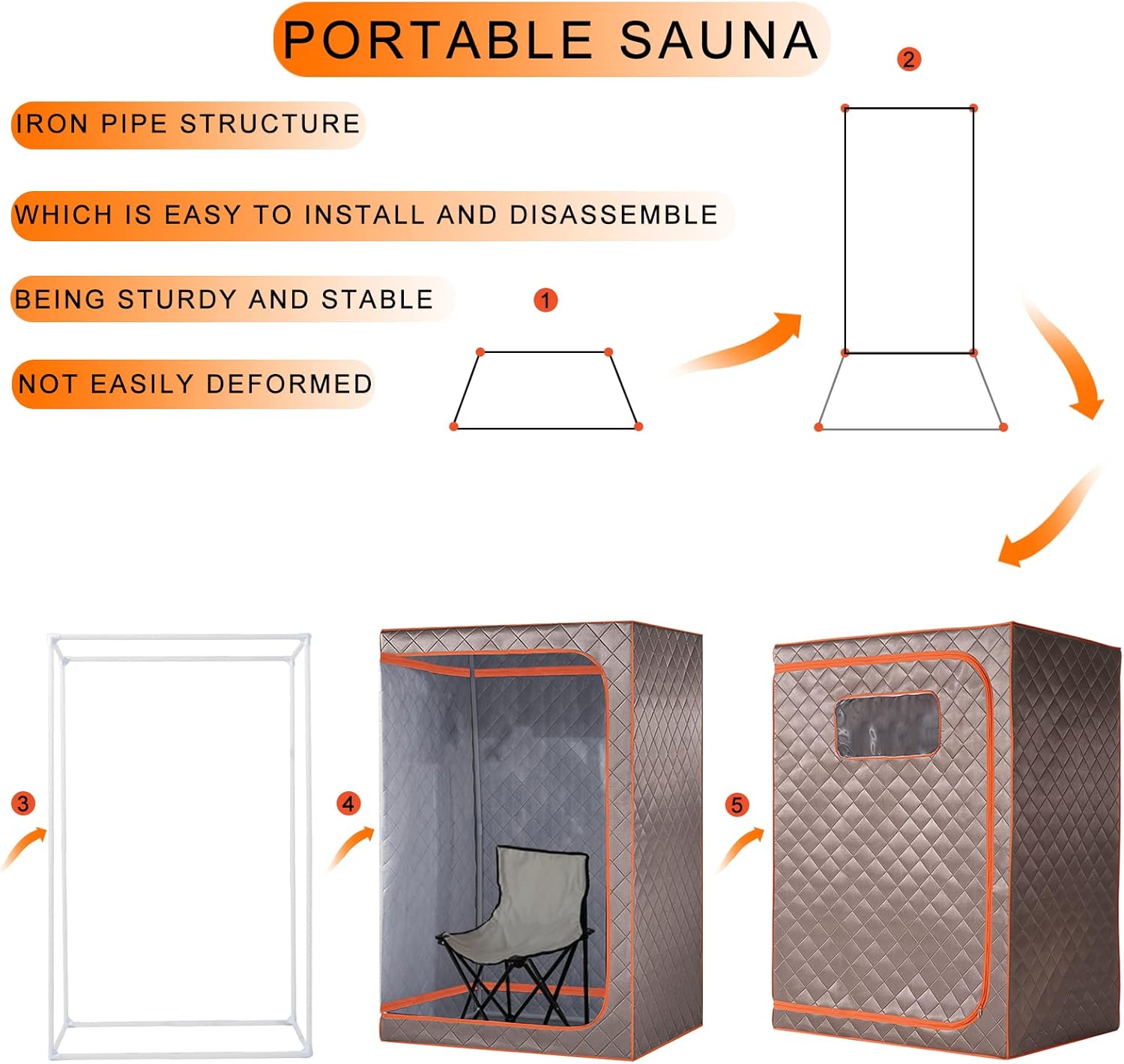 【PORTABLE AND EASY TO INSTALL】 : Steam sauna is easy to fold help you save a lot of space, You have to do is assemble the bracket to match the size of the connecting tube and load it into the sauna tent. Assembly can be done in just 5 minutes by following the instructions
