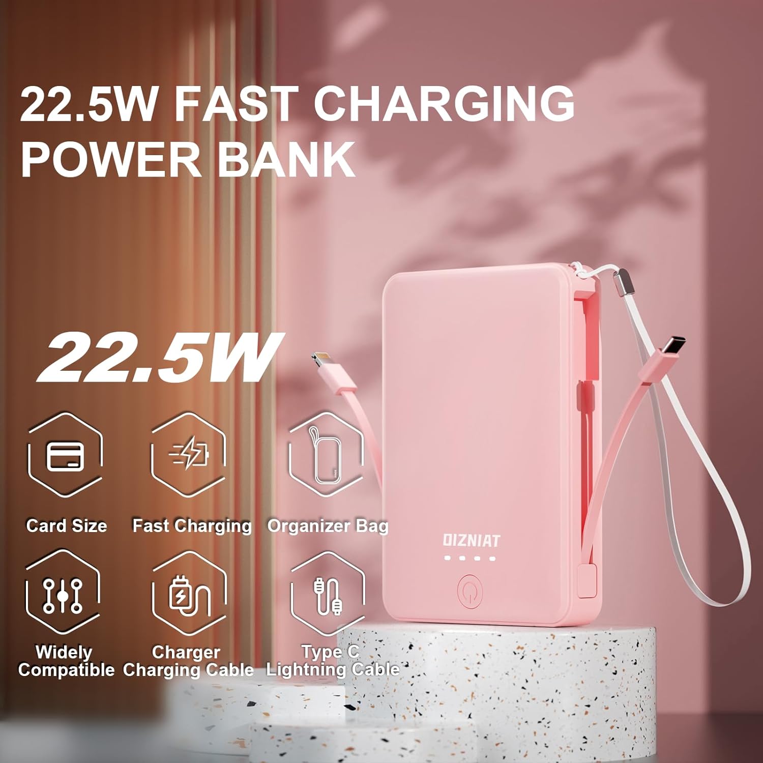 [10000mAh power bank]:Small and Slim External Power Bank ] mini power bank packs 10,000 mAh capacity into a remarkably compact and lightweight design.it comes with a cable organizer,a type c charger fast charging to your daily needs.Pink portable charger can asily slips into your pocket, purse, wallet, or backpack, making it the perfect travel must-have for staying powered up wherever you go. Whether you’re commuting, flying, having parties, on a cruise, or camping, this small yet mighty charger keeps your devices running without weighing you down,nursing school essentials, fall sports must haves for moms