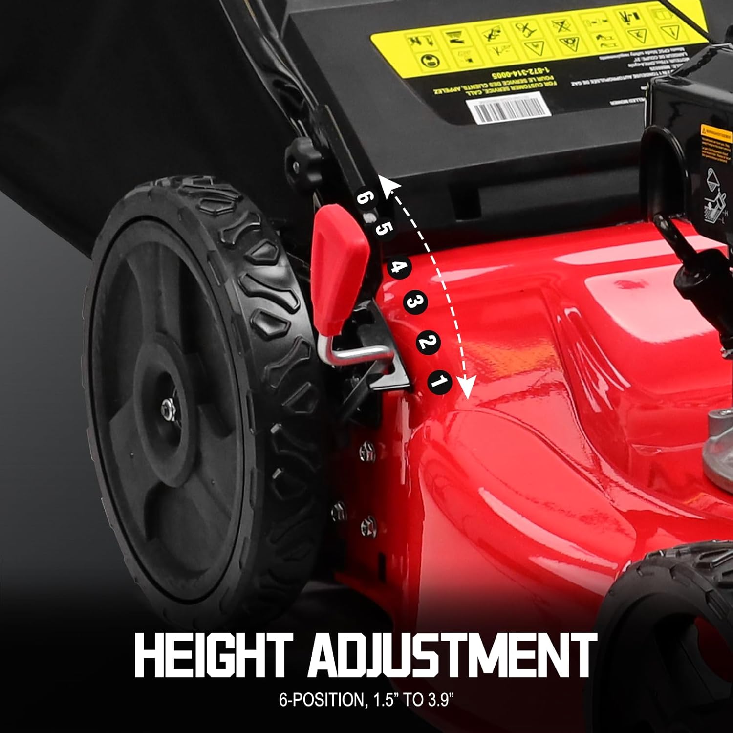 Adjustable Cutting Height: Durable steel deck with single-lever, 6-position height adjustment makes it easy to change cutting heights from 1.5in. to 3.9 in.