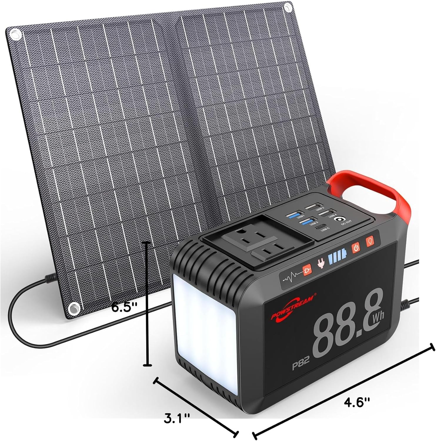 POWSTREAM 80W Solar Powered Generator with Panels 21W Included, 88.8Wh Lithium Battery Portable Power Station with AC Outlet 120W Peak Fast Charging 110V for Camping Outdoor Home Backup Backup RVs