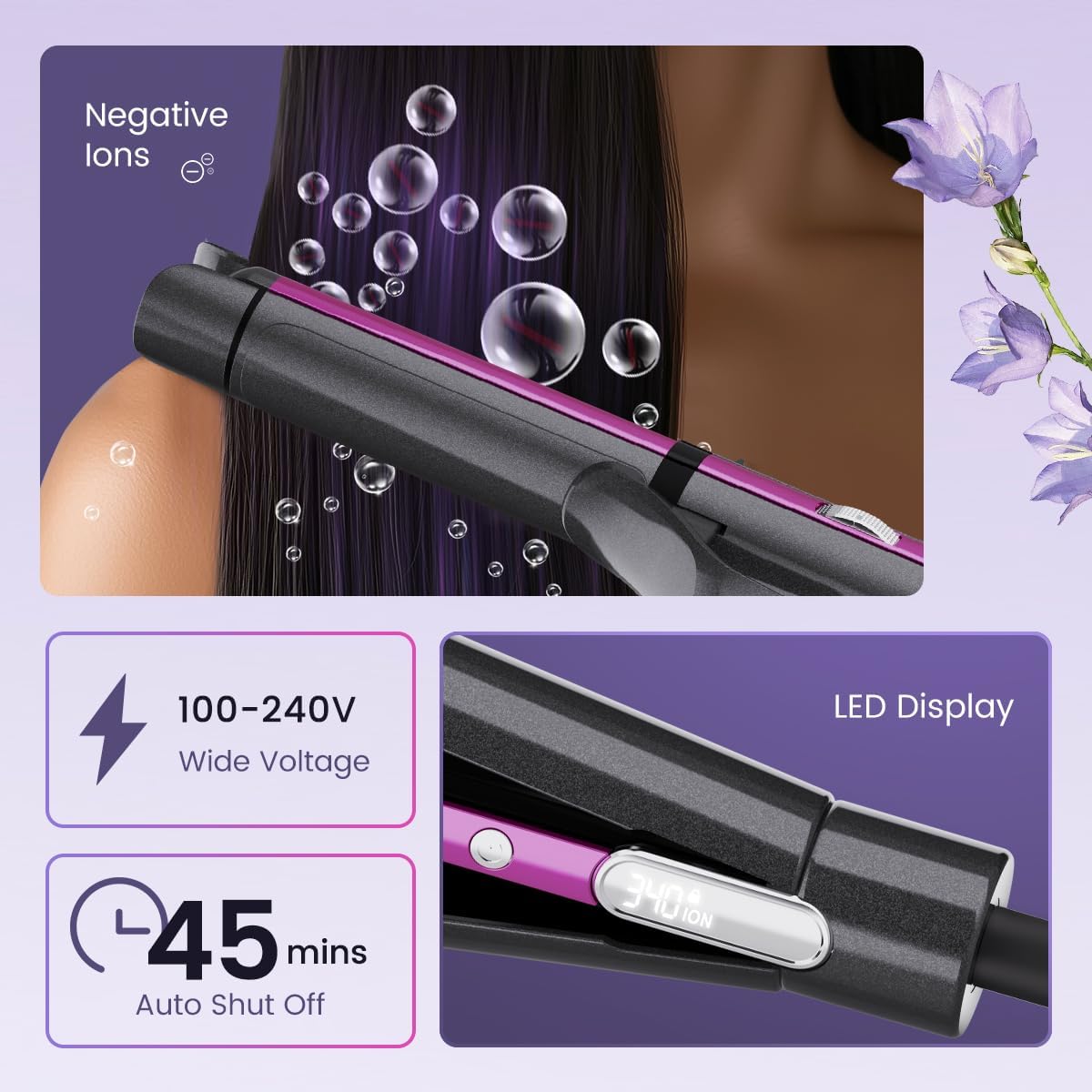 【Smooth Styling with Ceramic & Negative Ions】 Advanced ceramic plates infused with negative ions glide effortlessly without pulling or snagging, reducing hair damage and frizz. Leaves hair smooth, shiny, and soft with every pass.