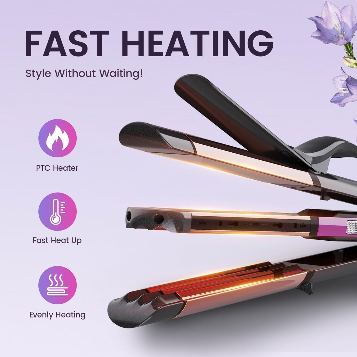 【3-IN-1Multifunctional Hair Iron】With upgraded 3 in 1 Design,Straightener, Curler and Crimper, hair flat iron can easily create smooth, glossy straight hair , wavy, linear curls and Small,delicate curls. The hair iron can meet all your salon hairstyles anytime anywhere in less time.