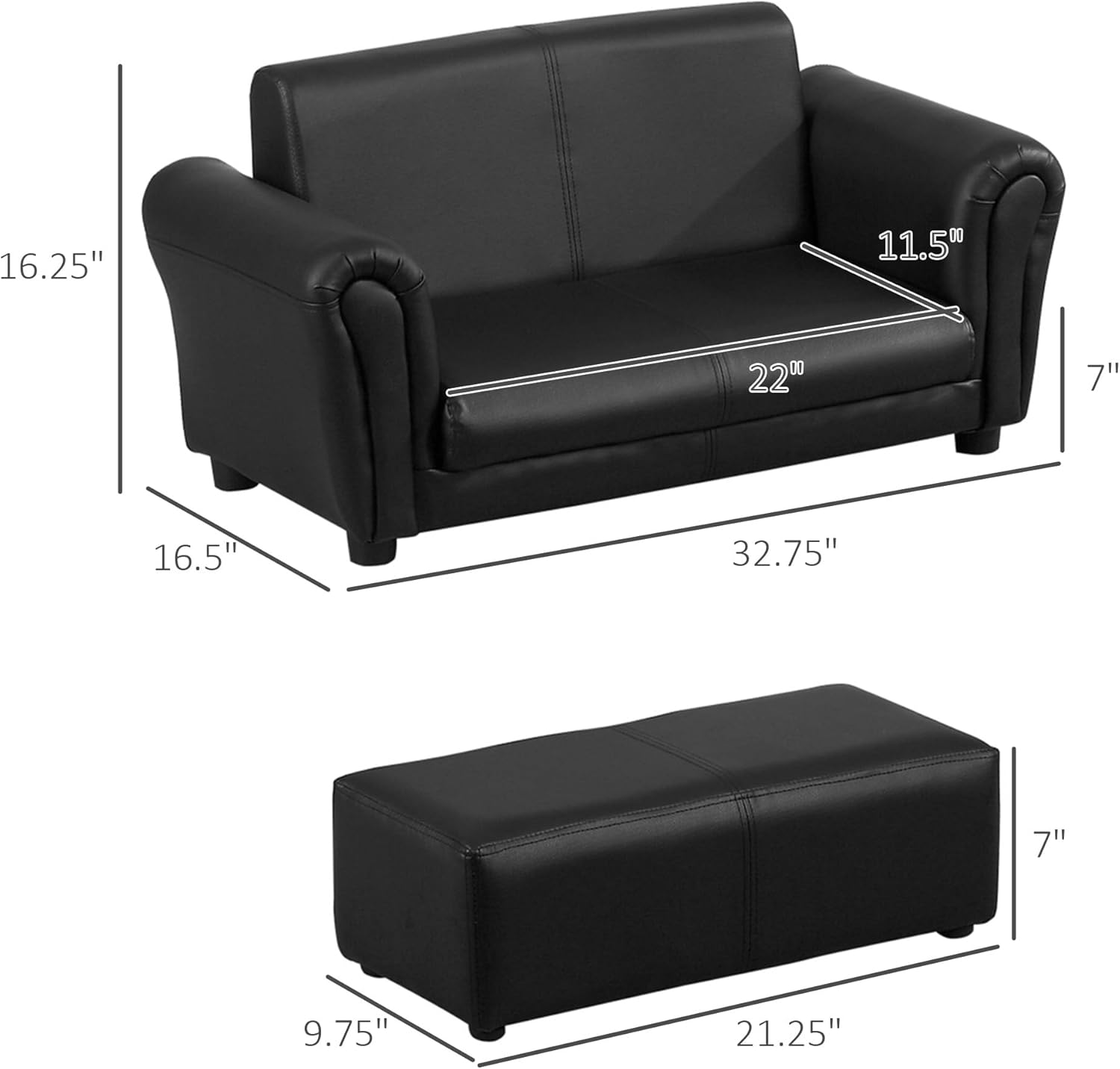 Qaba Kids Sofa with Footstool for Children, Toddler Couch for Playroom, Nursery, Living Room, Bedroom Furniture, Black