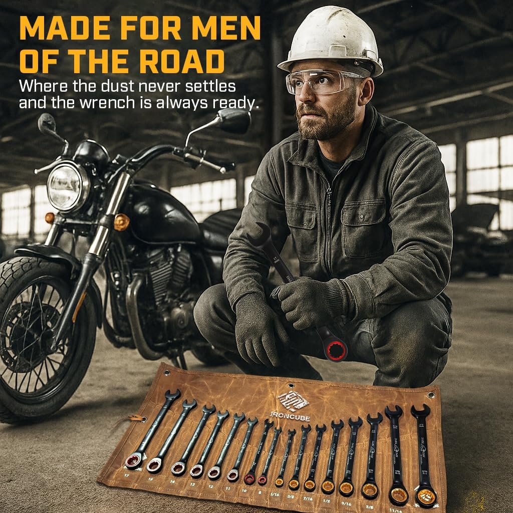 IDEAL FOR VARIOUS APPLICATIONS – Perfect for automotive, motorcycle, and workshop tasks, this ratcheting spanner set’s comprehensive size range and durable design make it an essential tool for any maintenance enthusiast or professional.