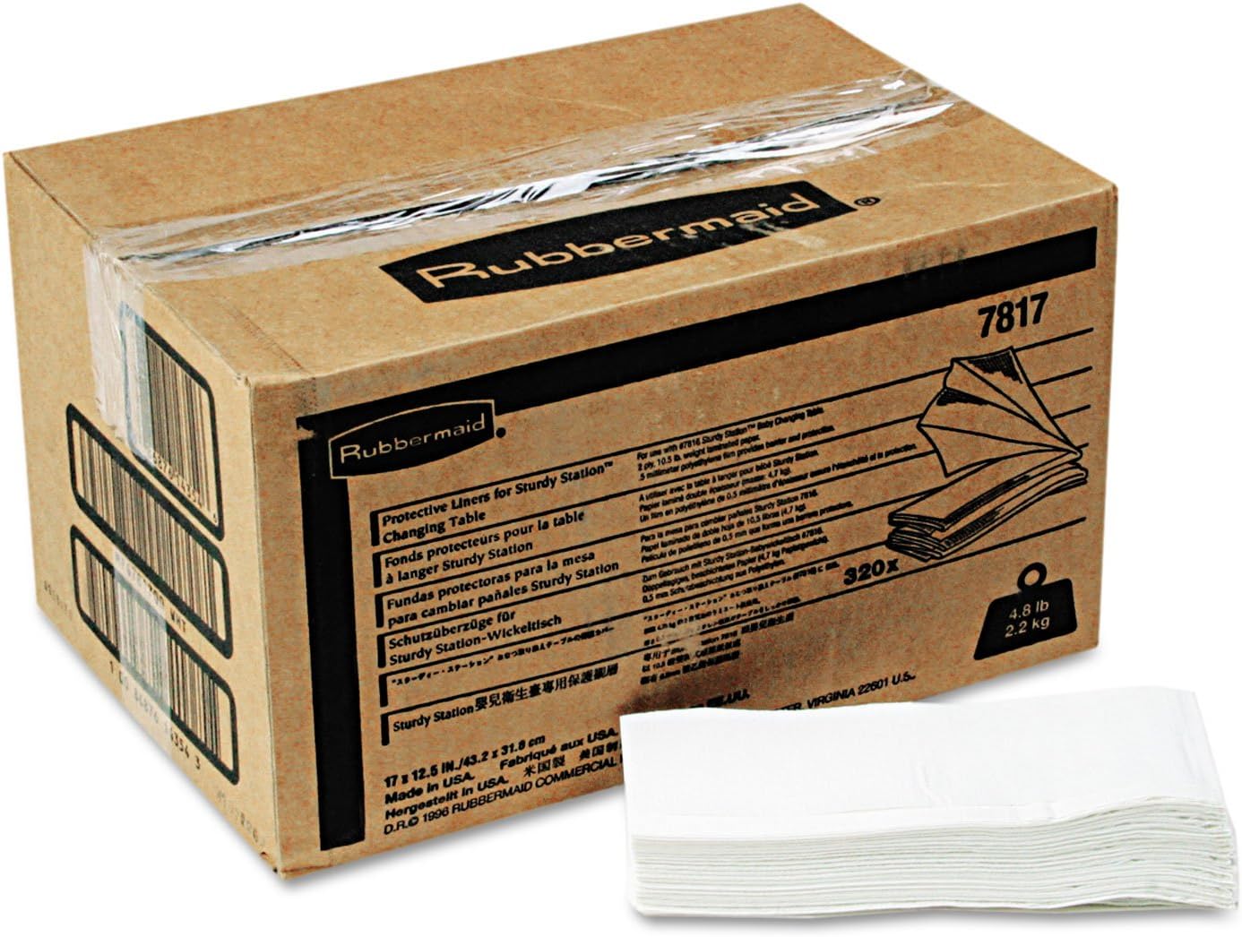 The Rubbermaid Commercial Baby Changing Table Pad fits many sizes of baby changing stations. These table liners are made of laminated, 2-ply tissue paper. Each changing table top pad features an embossed waffle pattern designed for durability, maximum absorption and antimicrobial protection. Size (W x L): 12 1/2″ x 17″; Material(s): Plastic; Color(s): White; Shipping Quantity: 320 per carton.