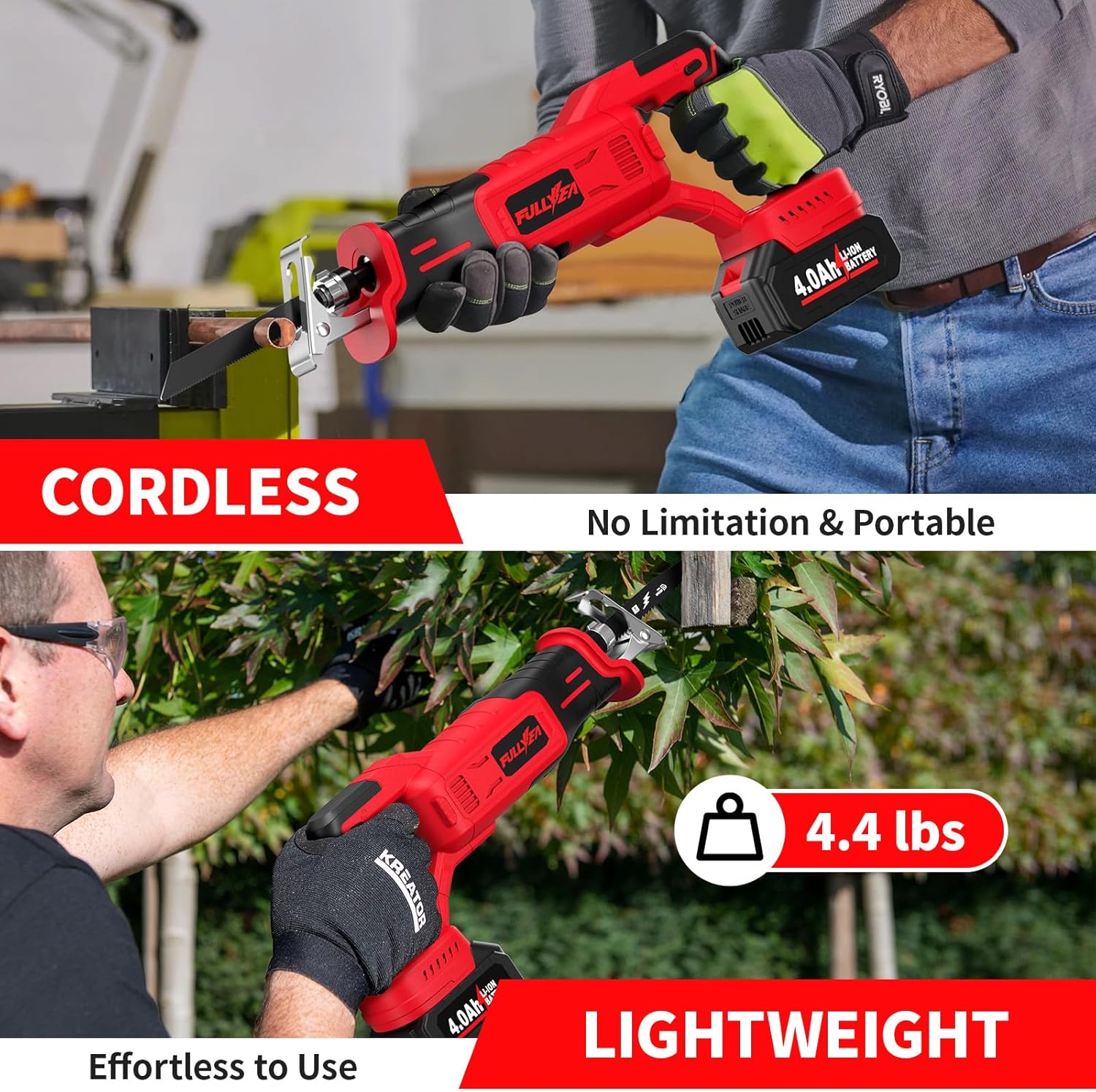 [ Excellent Customer Service ] — FULLYEA is committed to providing you with professional tools and quality service. If you have any questions about this battery-powered reciprocating saw, please feel free to contact us!