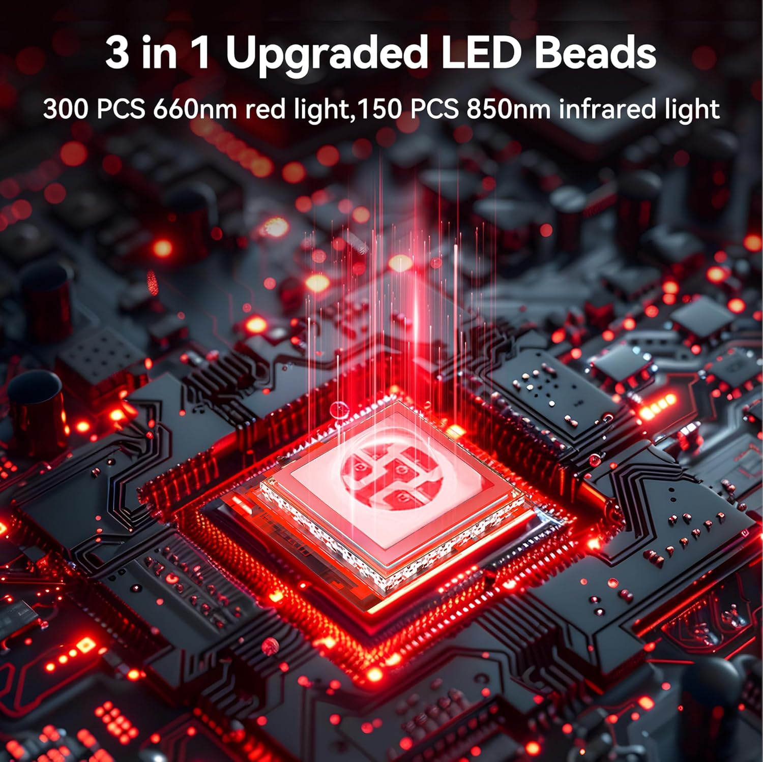 【150𝙥𝙘𝙨 𝙐𝙥𝙜𝙧𝙖𝙙𝙚𝙙 3 𝙞𝙣 1 𝙇𝙀𝘿 𝘽𝙚𝙖𝙙𝙨】Vortro red light therapy belt features 150 brand-new upgraded 3 in 1 LED beads. Each LED bead consists of 2*660nm red light and 1*850nm near-infrared light. There are 300 pcs 660nm red light can penetrate the skin epidermis, promote cell metabolism,150 pcs 850nm near-infrared light can accelerate blood circulation and relaxation of muscle tension.